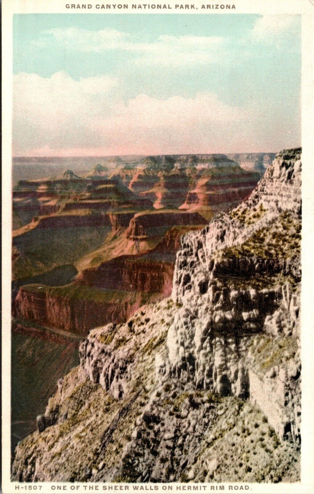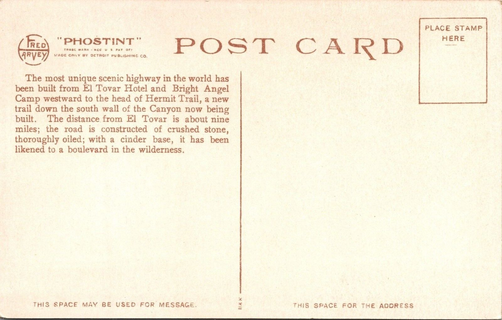 Hermit Rim Road Sheer Wall Canyon Arizona Fred Harvey Phostint UNP Postcard L9