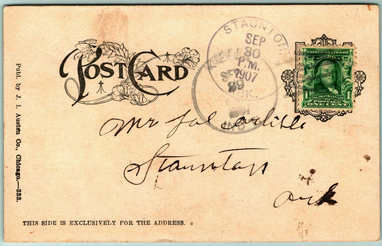 Normal wear associated with an old postcard it might have creases, a corner bump, ink on the front etc.