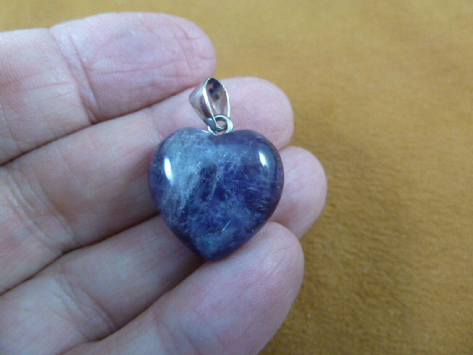 (Internal #J-HEA-10) Excellent heart shaped pendant in natural PURPLE AMETHYST CRYSTAL gemstone, heart is fully 3D; 3/4" wide x 3/4" high x 1/4" thick, Sterling loop.