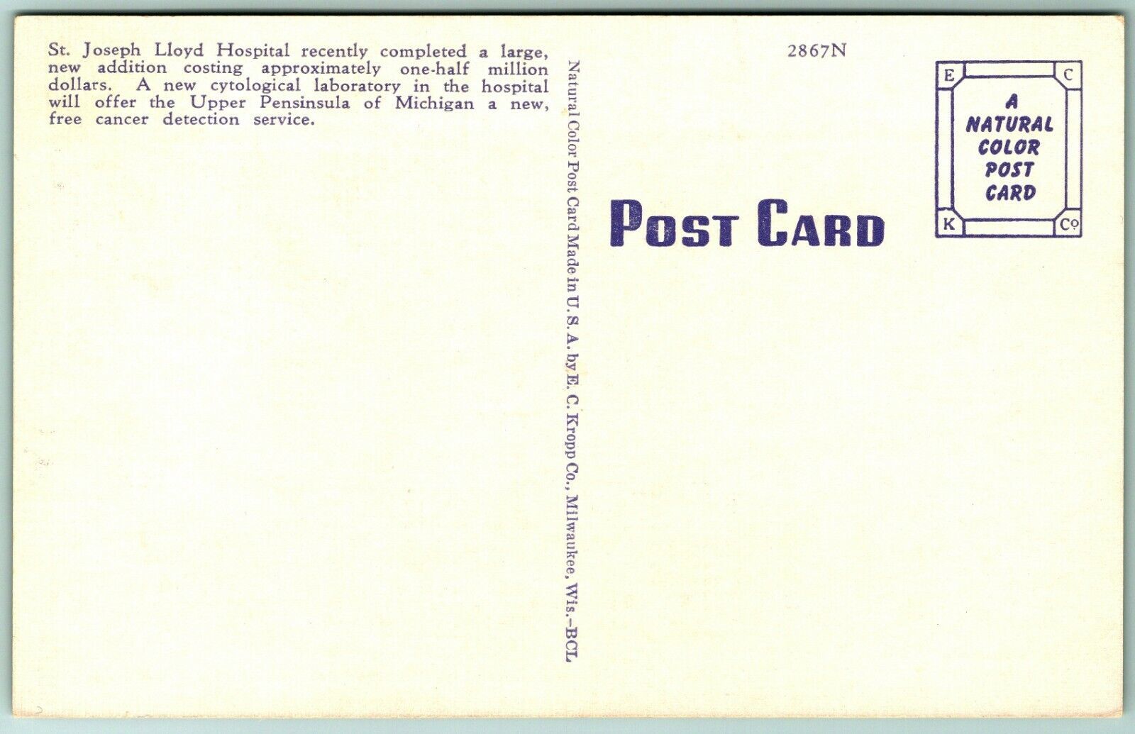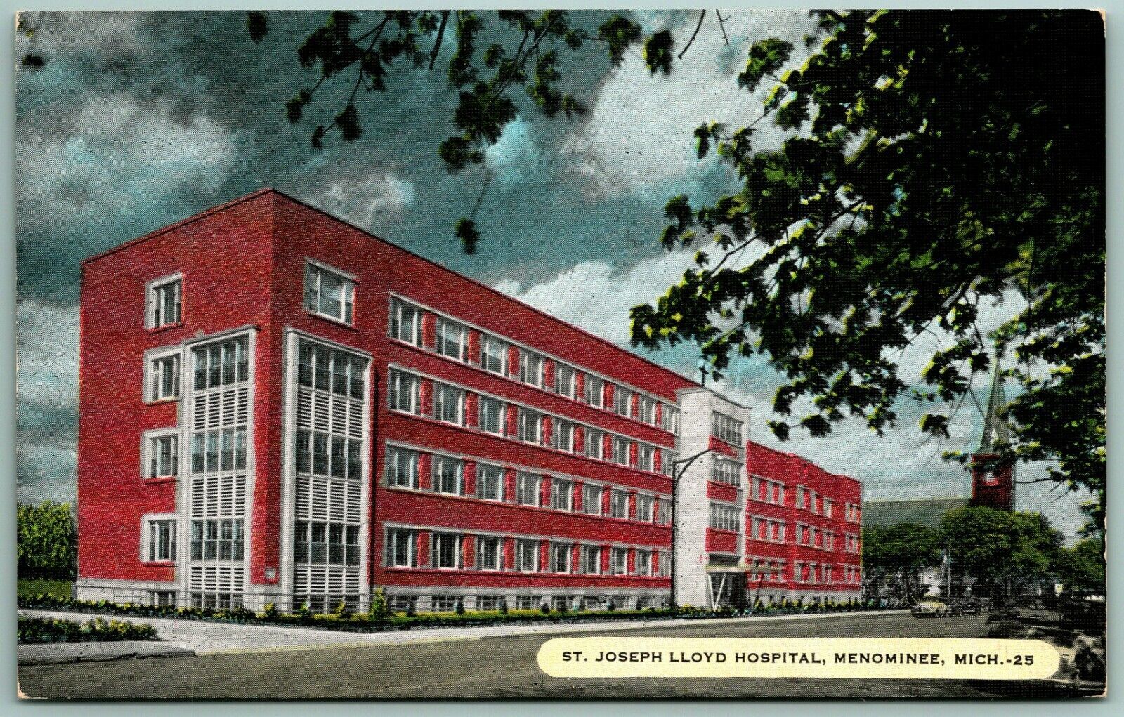St Joseph Lloyd Hospital Menominee Michigan MI UNP Linen Postcard F14
