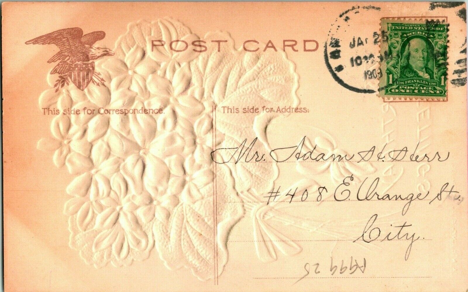 Birthday Greetings Flower Bouquet Periwinkle Embossed & Airbrushed Postcard H31