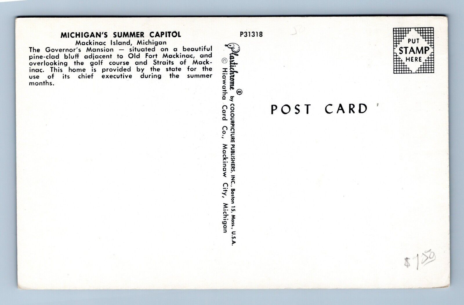 Governor's Mansion Mackinac Island Michigan MI UNP Chrome Postcard P5