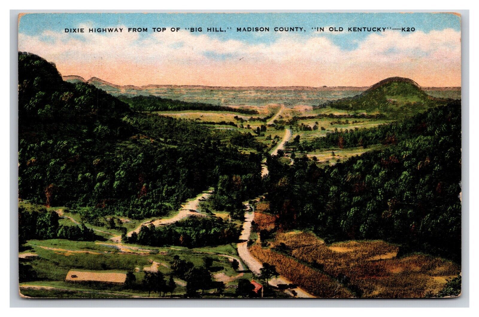 Dixie Highway From Big Hill Madison County Kentucky KY Linen Postcard XA2