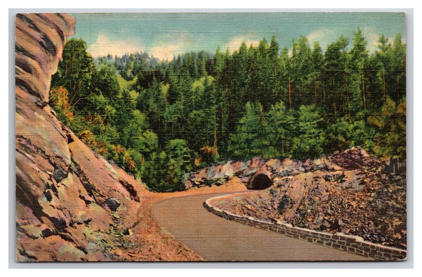 Newfound Gap Highway Great Smokey Mountains National Park UNP Linen Postcard XA1