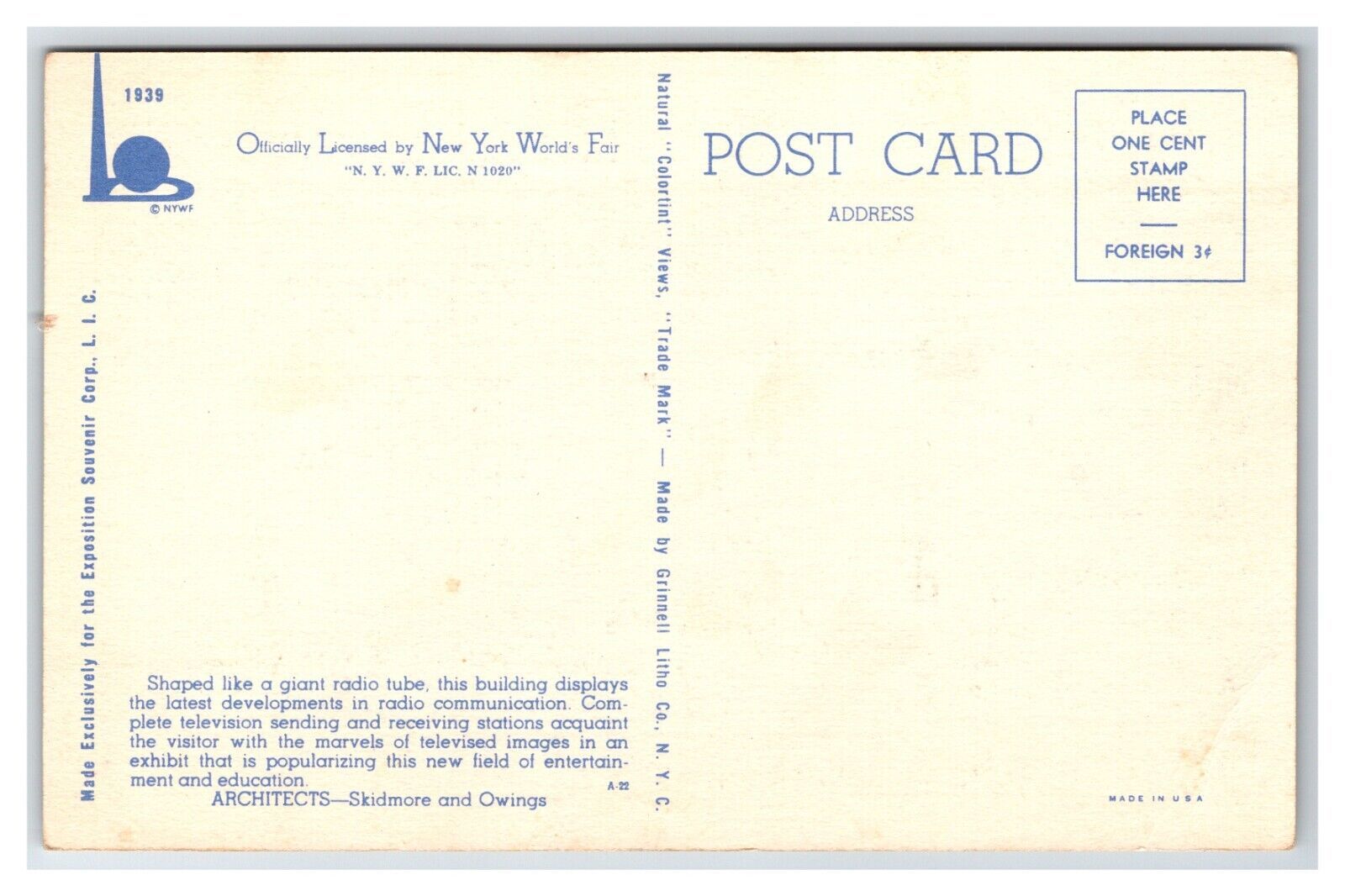 Radio Corporation of America New York NY Worlds Fair 1939 UNP Linen Postcard XA4