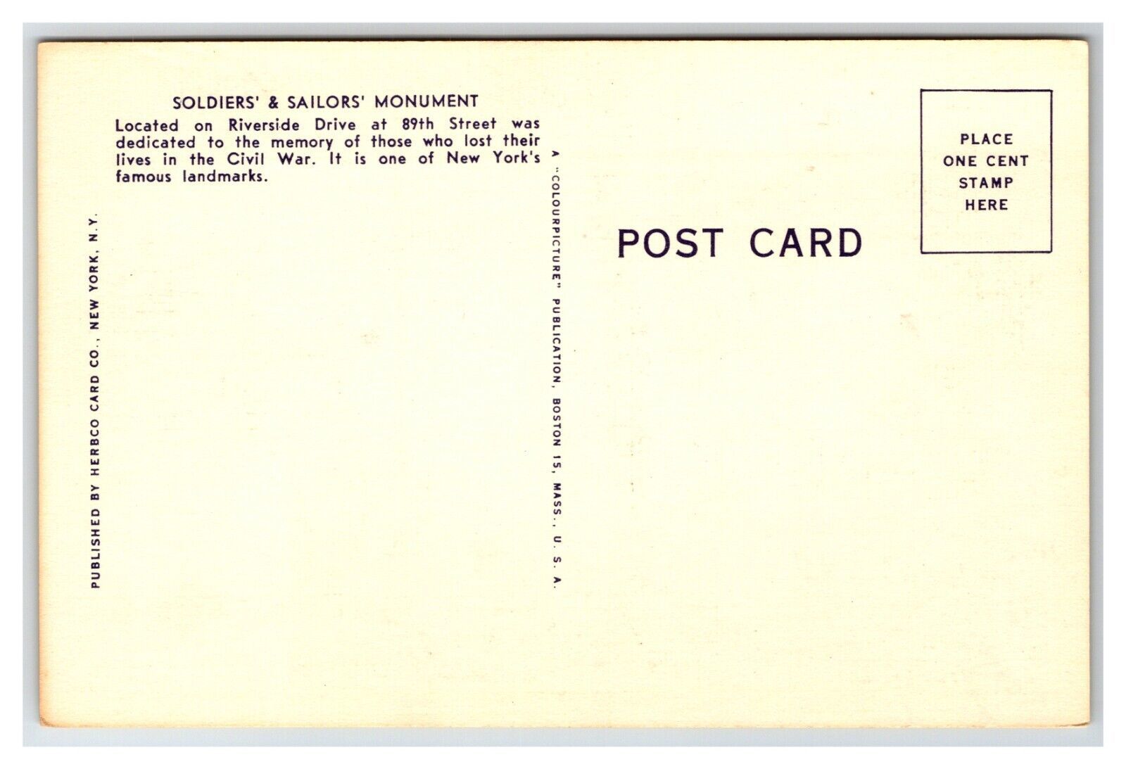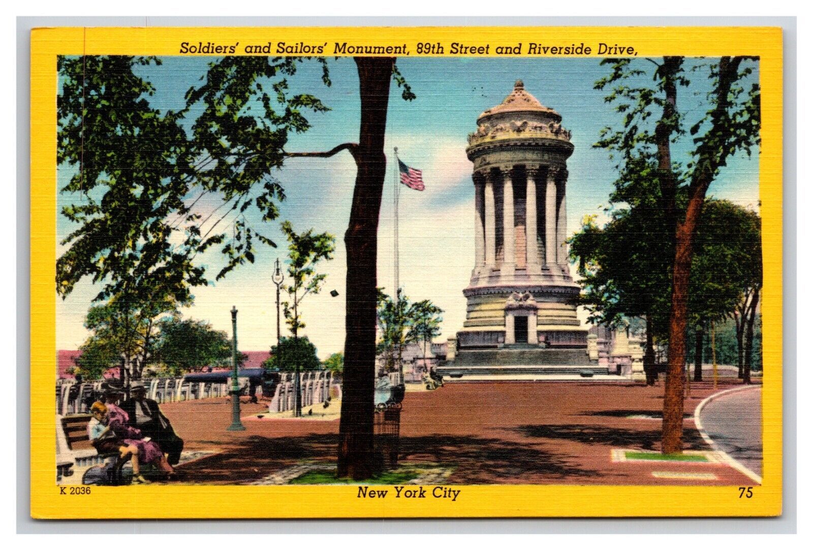 Soldiers and Sailors Monument New York City New York NY UNP Linen Postcard XA3