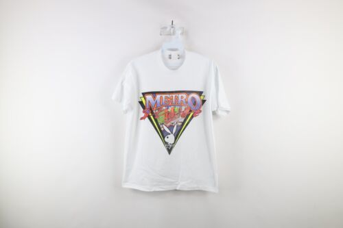 Vintage 80s Playboy Womens Medium Spell Out Metro Style Bunny T-Shirt White USA