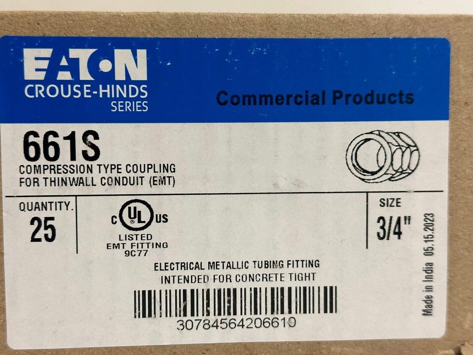 100 PK Eaton Crouse Hinds (661S) EMT Compression Couplings Type 3/4"
