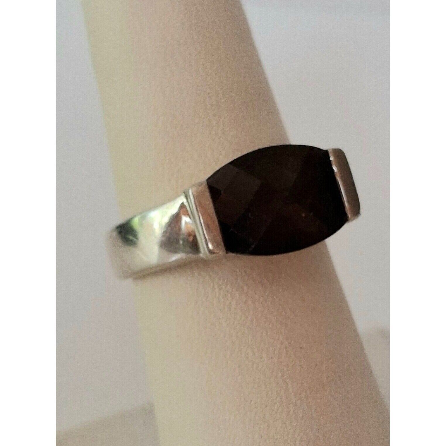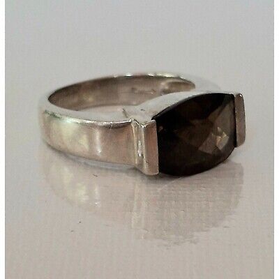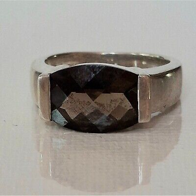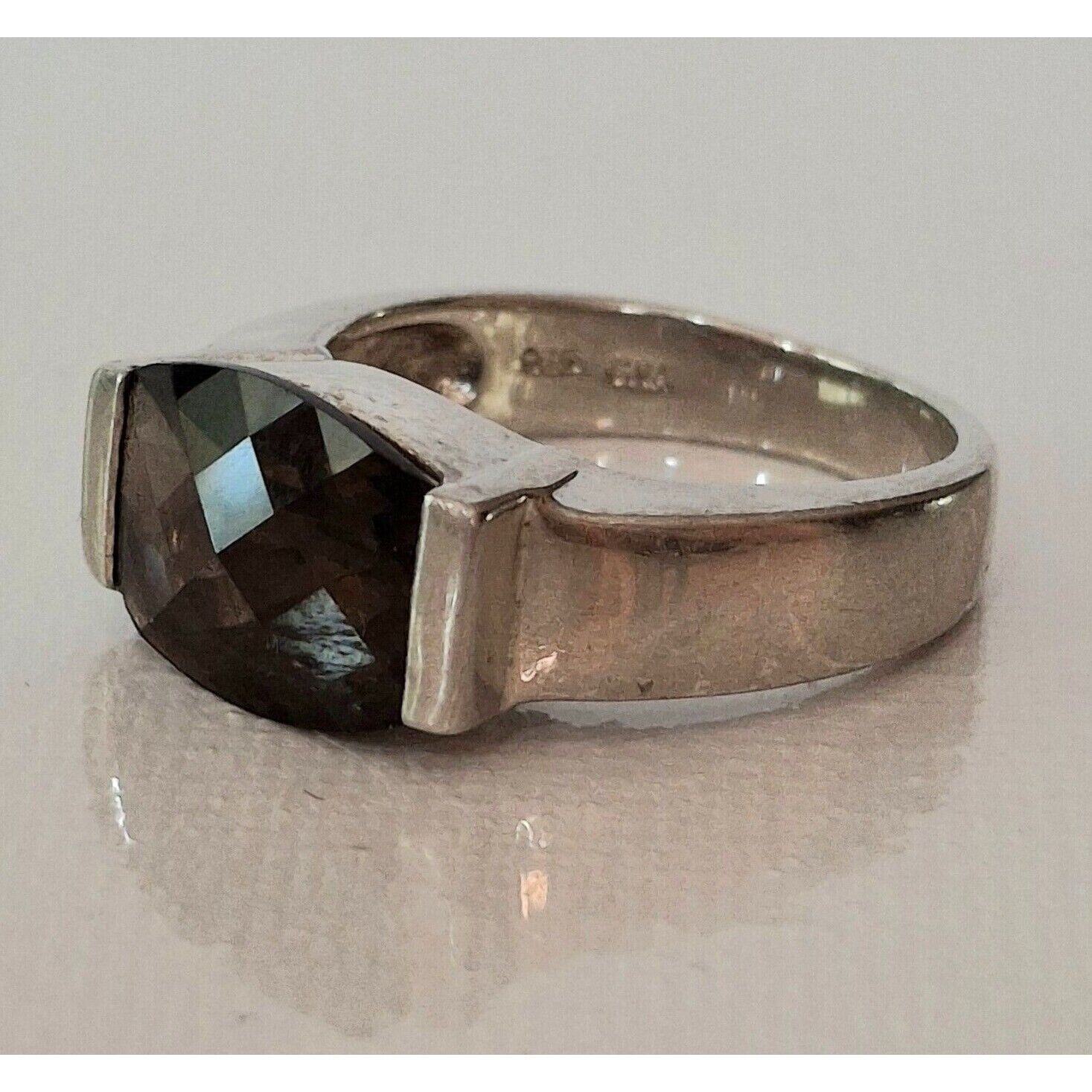 925 STERLING SILVER AND SMOKY QUARTZ RING SIZE 6.75 SKY