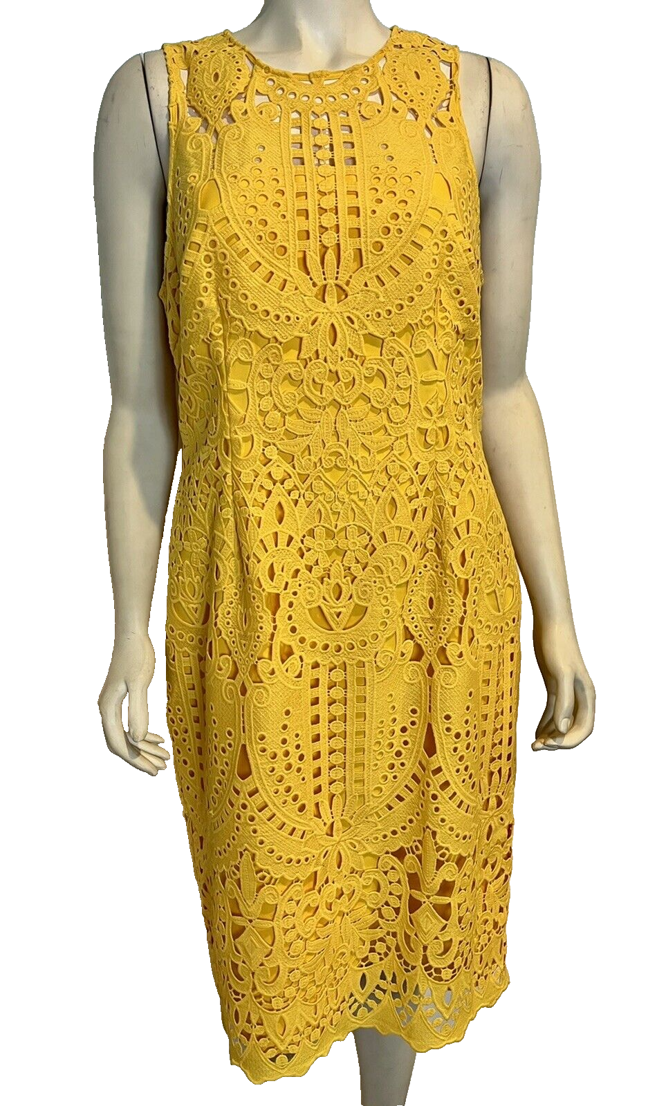 Antonio Melani Yellow Lace Lined Sleeveless Straight Pencil Dress Size 12