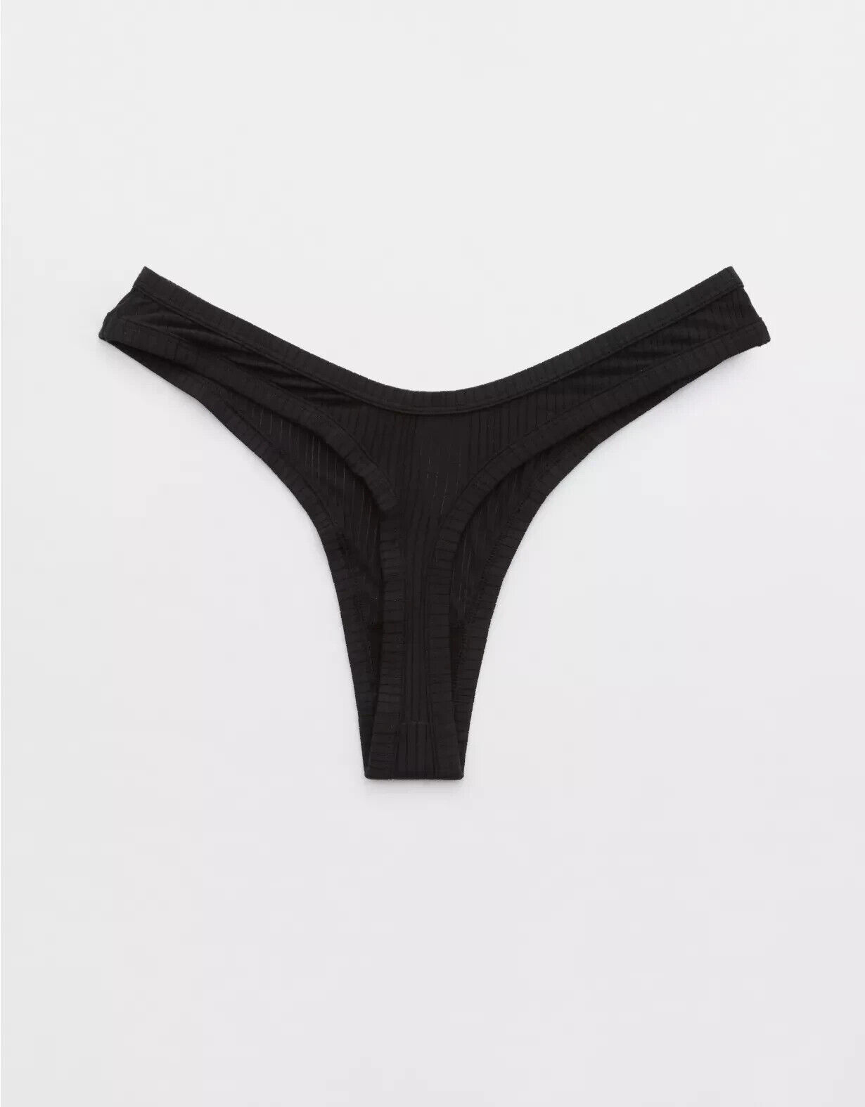 American Eagle Aerie Modal Hi Cut Thong Panties XX-LARGE Black Rib Silky