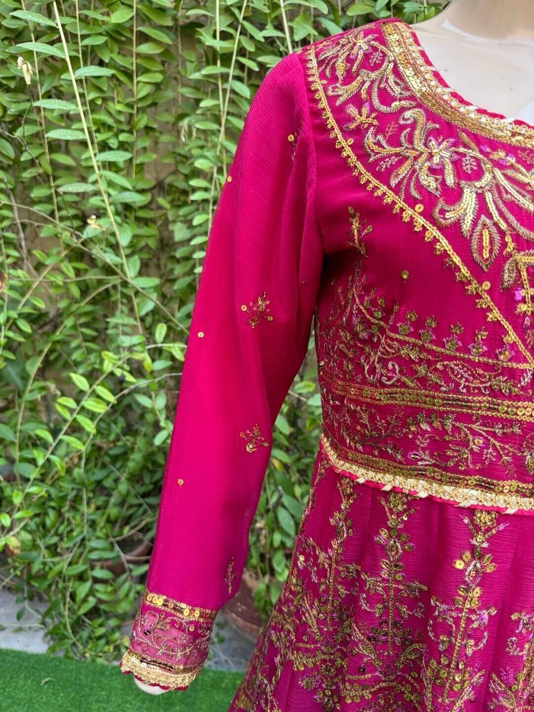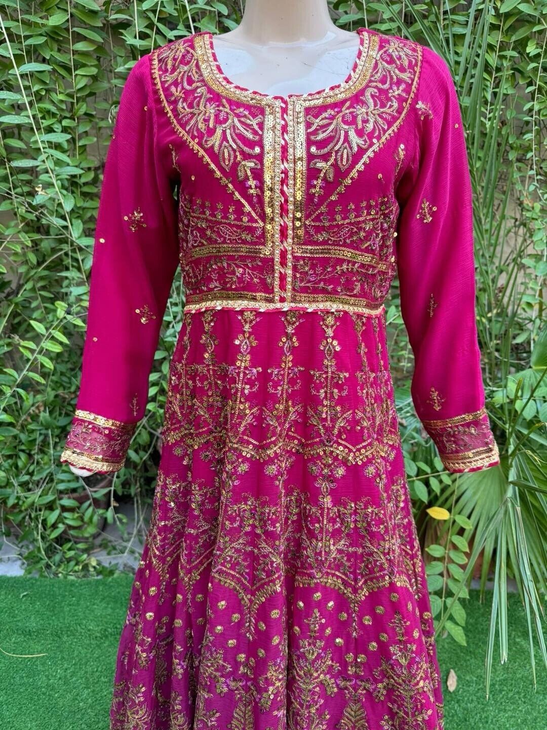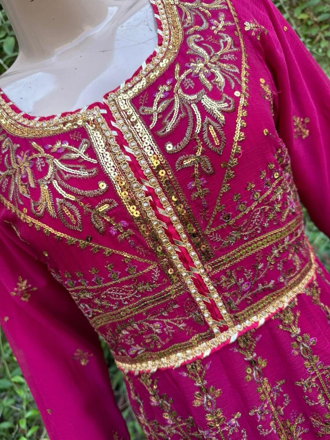 ? Hot Pink Chiffon long Maxi style shirt with full thread embroidery Sequins work, back is full embroidered.