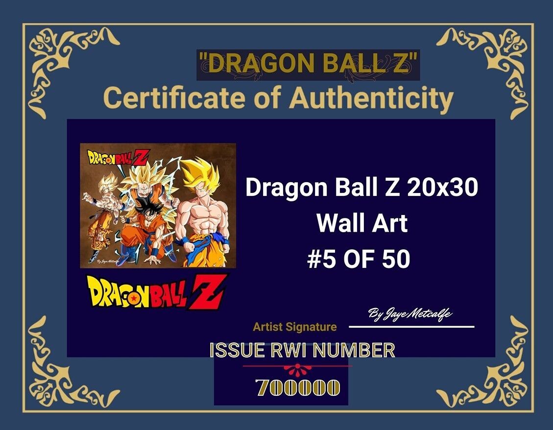 This is a 20x30 Dragon Ball Z wall art poster made of vinyl, featuring a modern art style with a design of balls. It does not come with a frame and is part of a limited edition of 50 pieces. Suitable for any room in a home, this poster adds a touch of unique decor to your space.