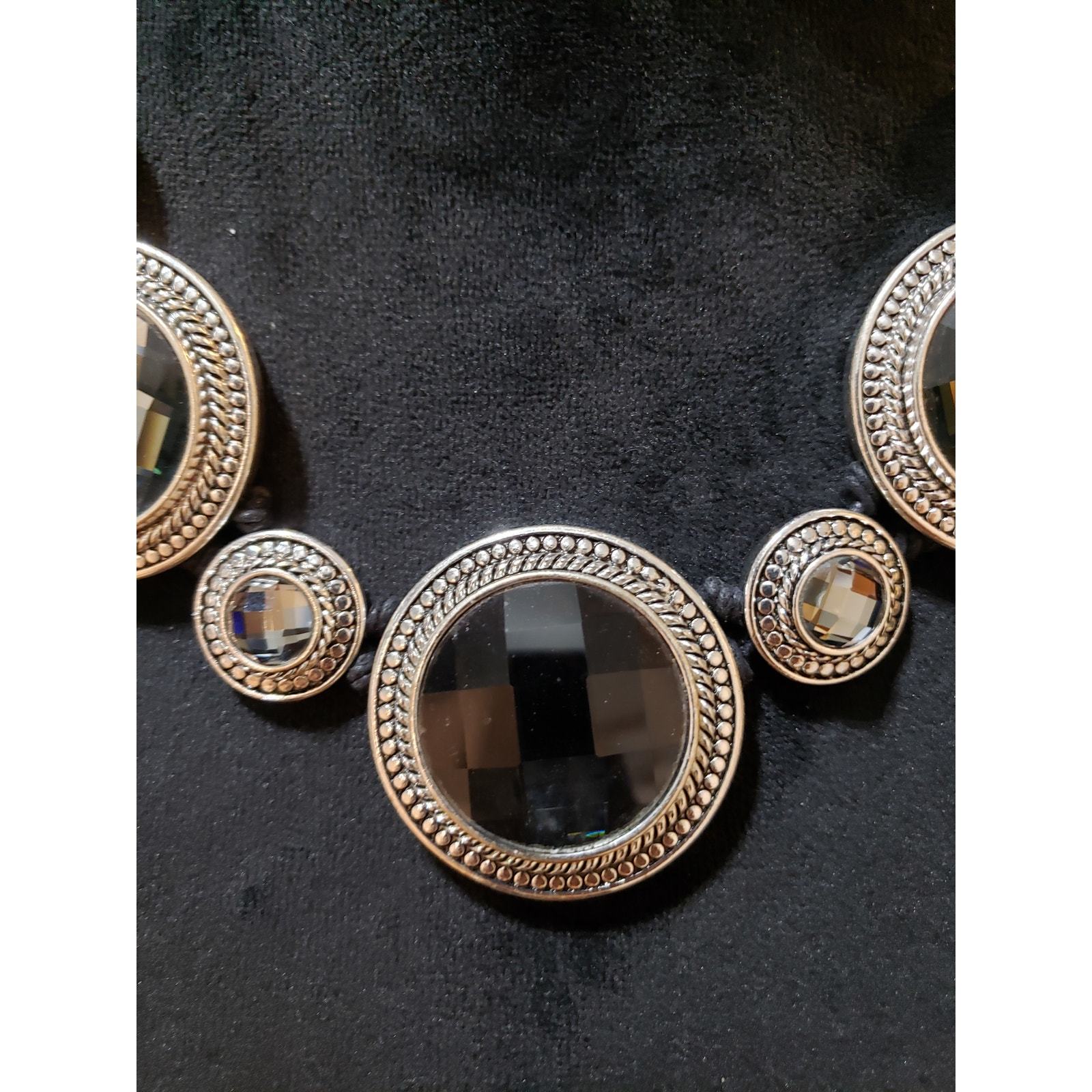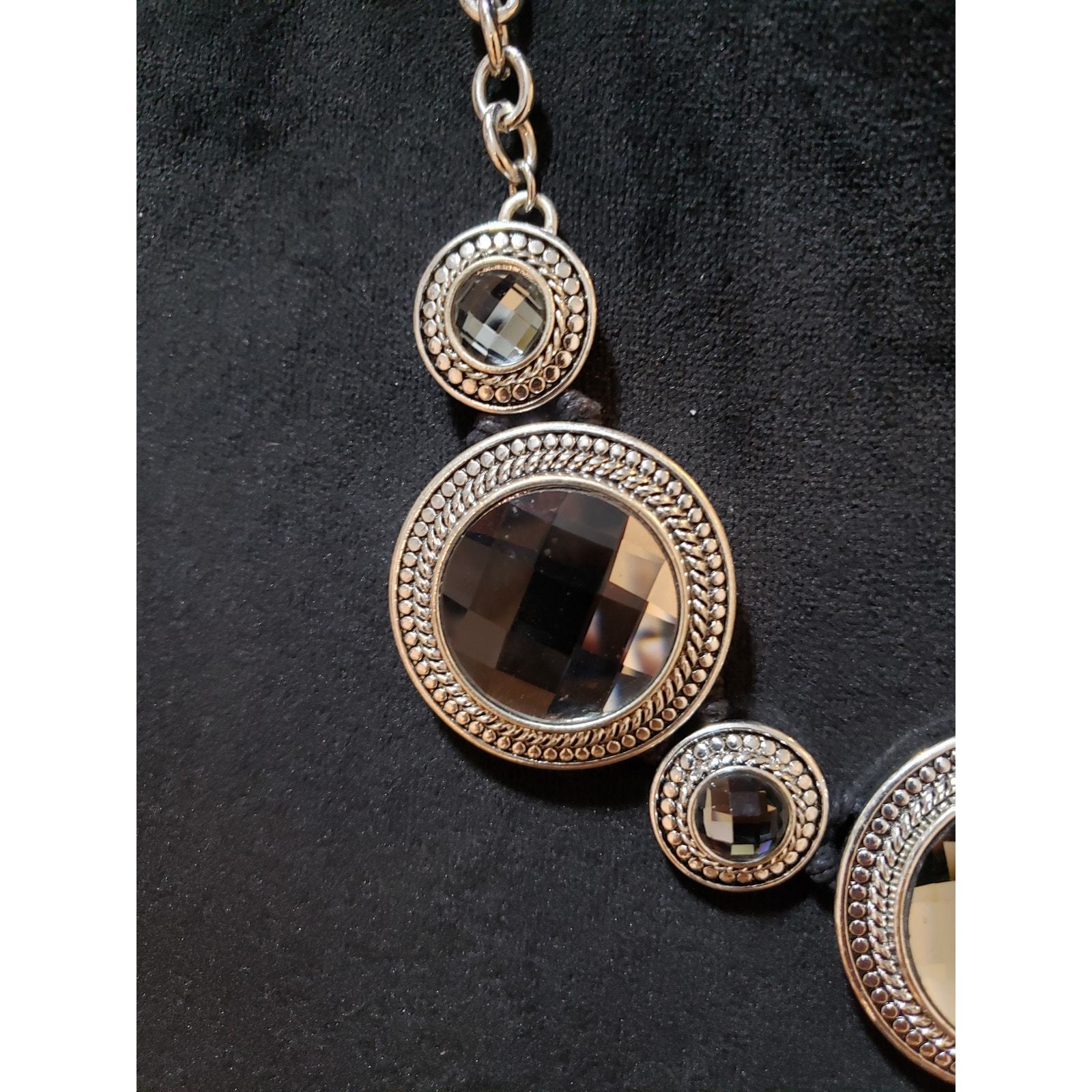 Women Fashion Silver Plated Encrusted Faceted Crystal Sparkle Statement Necklace.