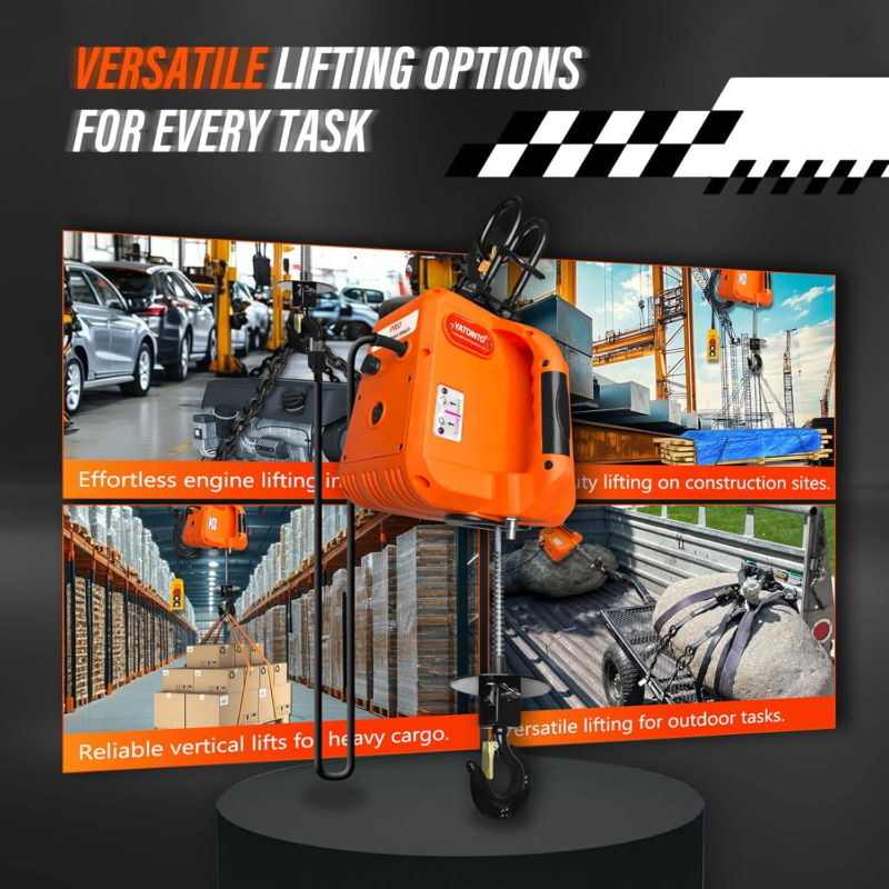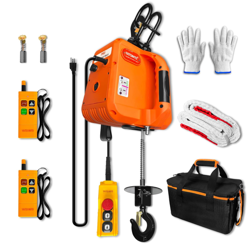 [MORE ADVANCED TECHNOLOGY] ? The latest electric hoist from YATOINTO features an upgraded 16.4ft wired remote control made with advanced waterproof materials and a red emergency stop button for enhanced safety. The wireless remote control range has been expanded from 200ft to 330ft, now including an additional remote for improved team coordination.