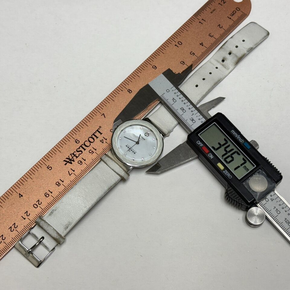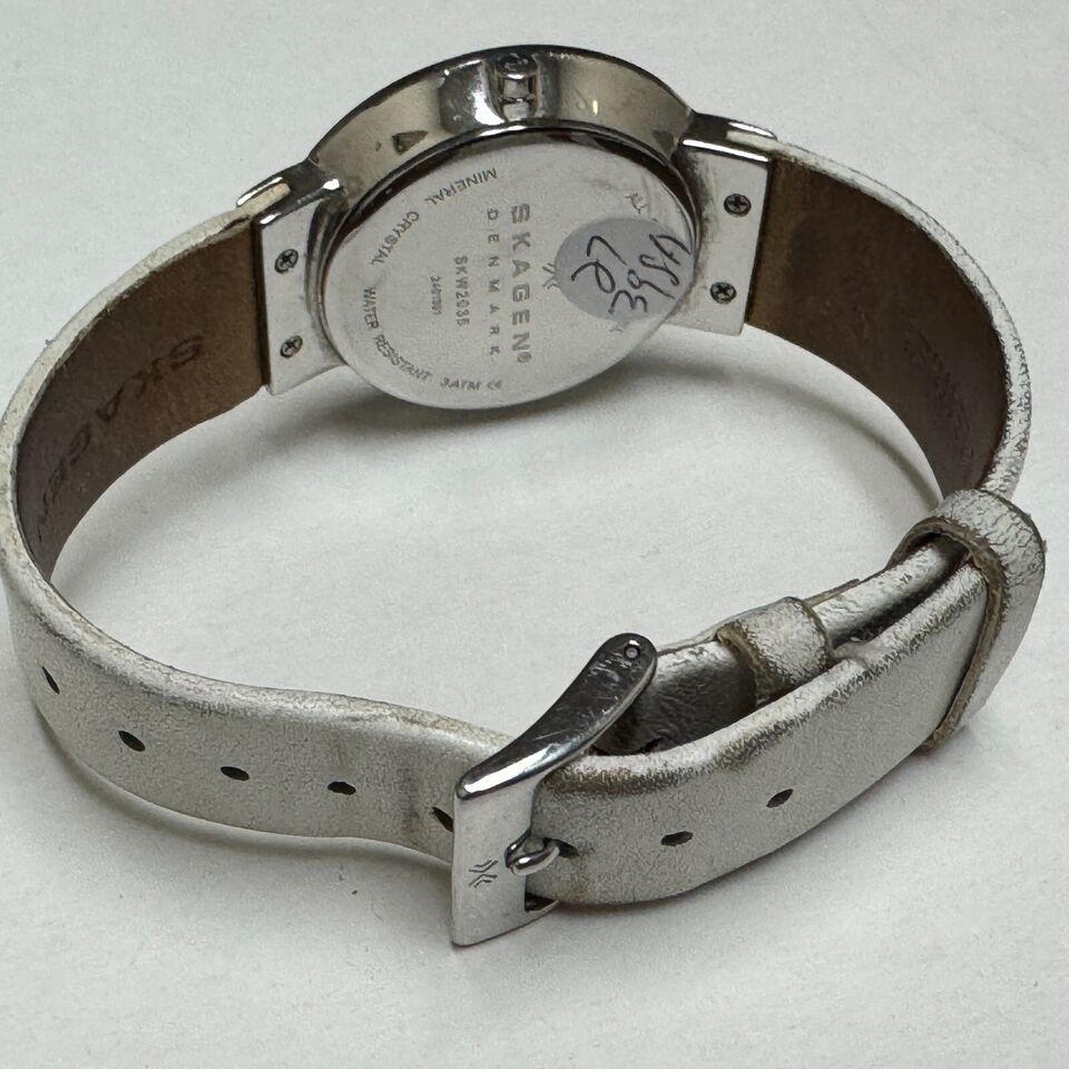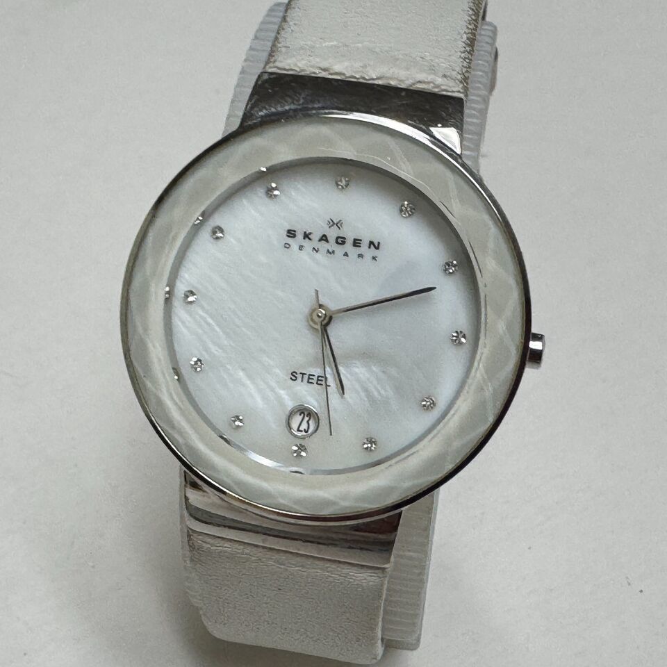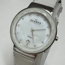Skagen Quartz Watch Unisex 30m Silver Steel White MOP Date Leather New Battery