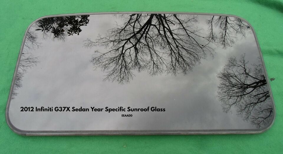 2012 Infiniti G37 / G37X Sedan Year Specific Sunroof Glass Panel. The sunroof is in good used condition, seal is 100% leak proof. Measurements are 33 3/4" long by 17 1/4" wide. This sunroof came standard on Infiniti G37 / G37X Sedan model year 2012 but please double check your measurements, bolt patterns and compare to ours to ensure a perfect fit. Aftermarket sunroofs have become very popular, if your sunroof switch looks like any in our last picture, you have an aftermarket. **Please note the Sedan and the Coupe use a different sunroof. Be wary of sellers stating this sunroof will fit many other years, it will not, this sunroof is specific to model year 2012, bolt patterns / spacing are different from year to year in the G37 / G37X Sedan line. This glass panel was removed from a G37 Sedan that had a blown engine so there is no unseen damage on this panel as is found with a majority of sunroof glass panels that are removed from wrecked vehicles. We have been dealing in sunroof glass panels for 20 years now and only sell the panels that come through our shop that are off of vehicles that have not been in major accidents. We also 100% inspect and clean the panels, especially the seals, in an effort to identify any imperfections that may cause issues down the road. The sunroof comes read to bolt in. Please message us with any questions that you may have.