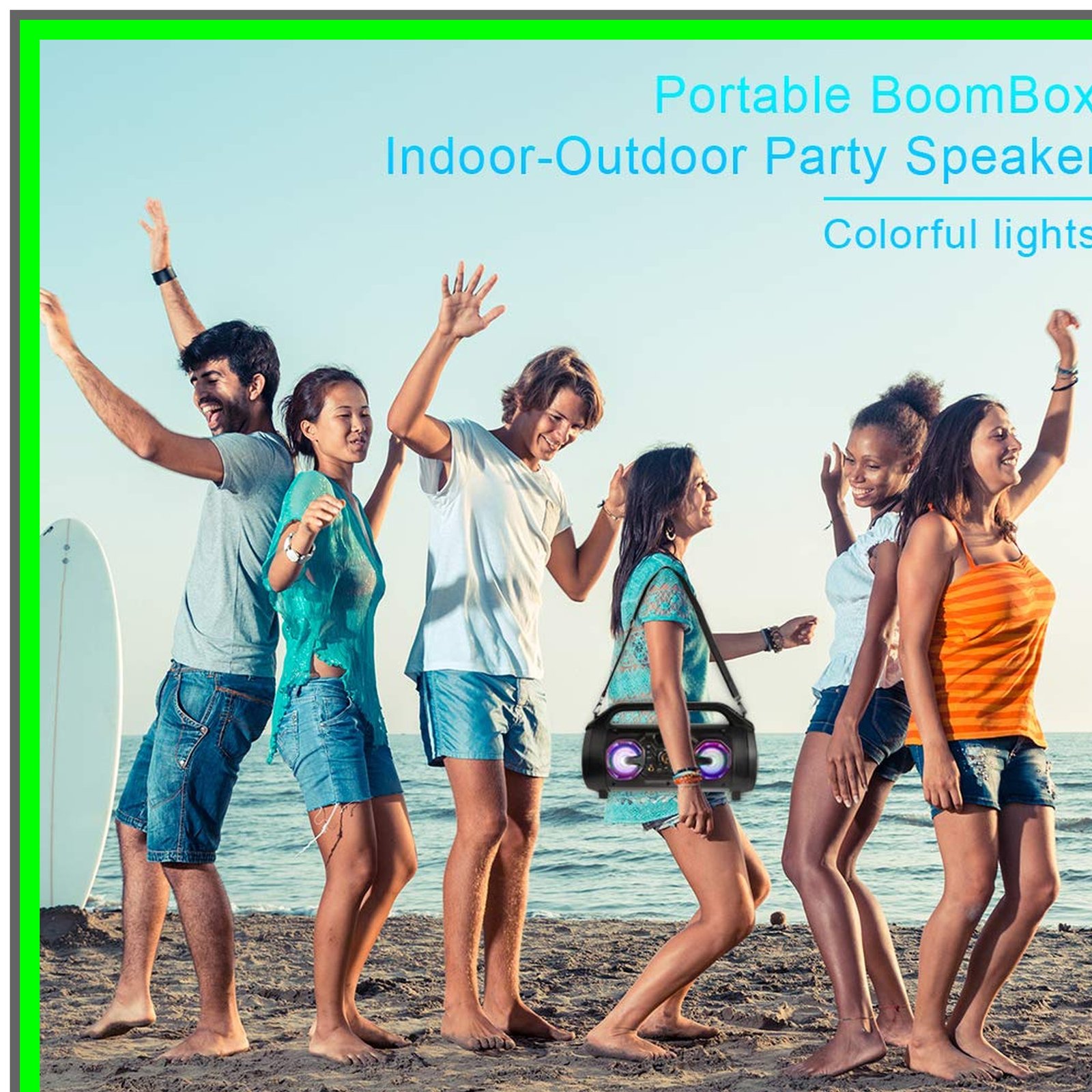 VibrantSound 30W Portable Bluetooth Boombox with Lights and Bass