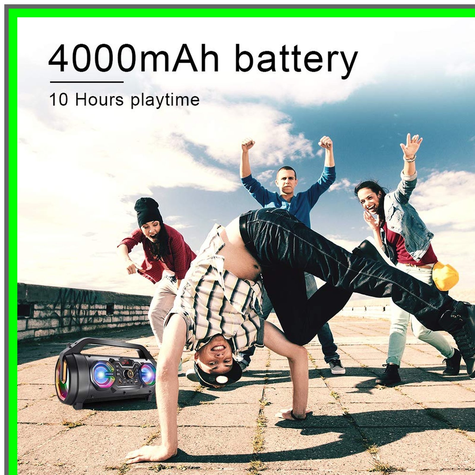 30W powerful sound, 10h battery, portable design.