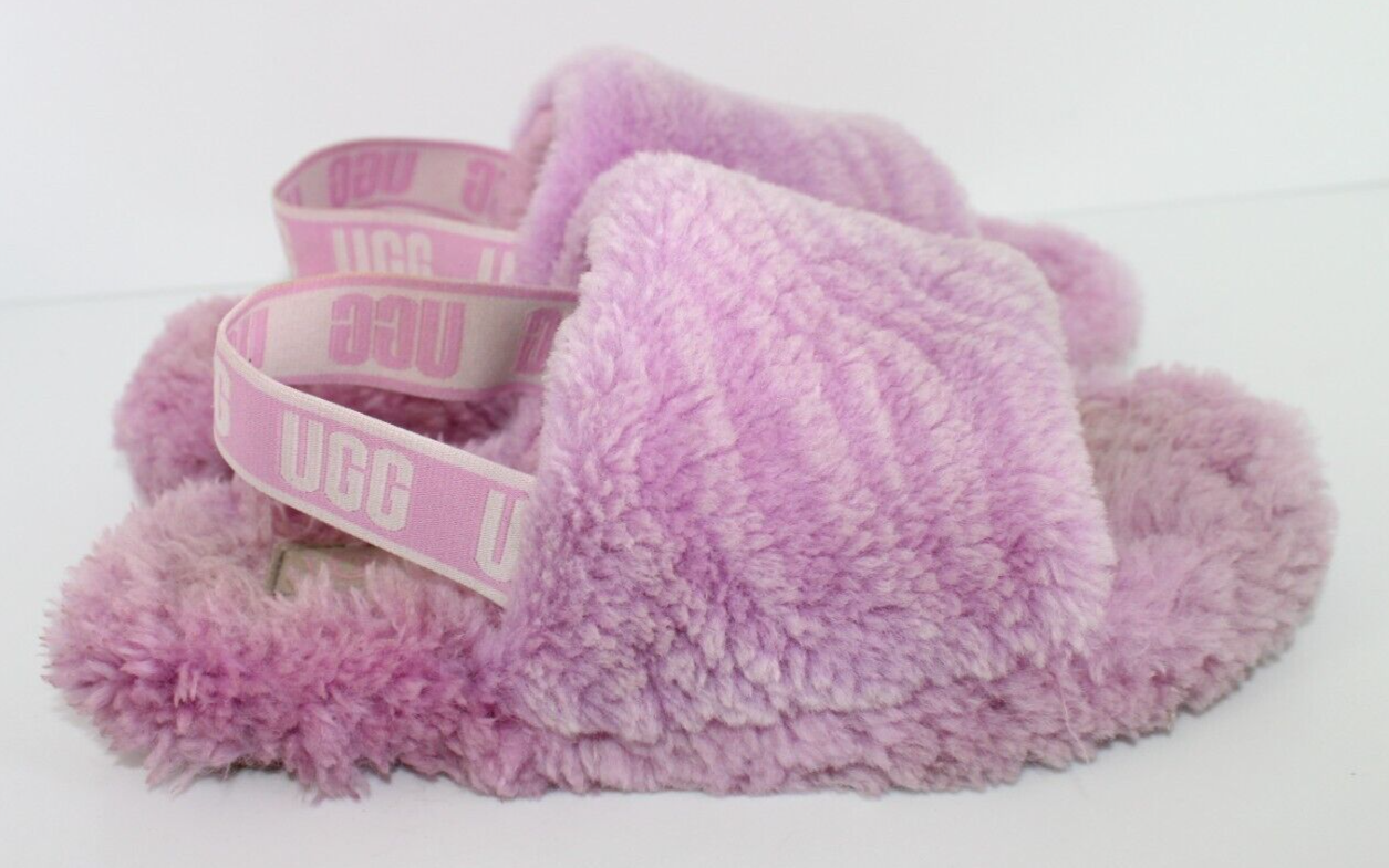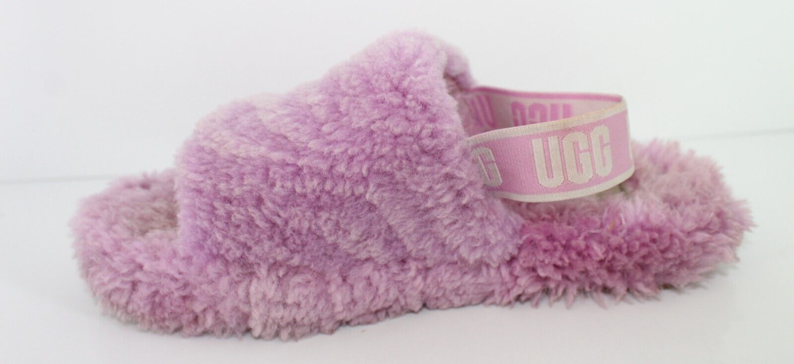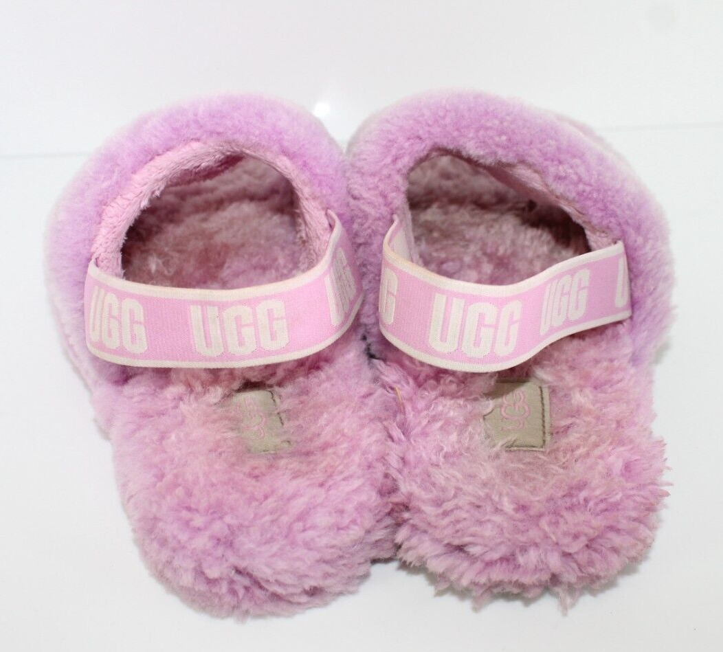 UGG Womens 6, Girls Size 4 Pink Wavy Wool Slingback Slipper Sandal 1124929K