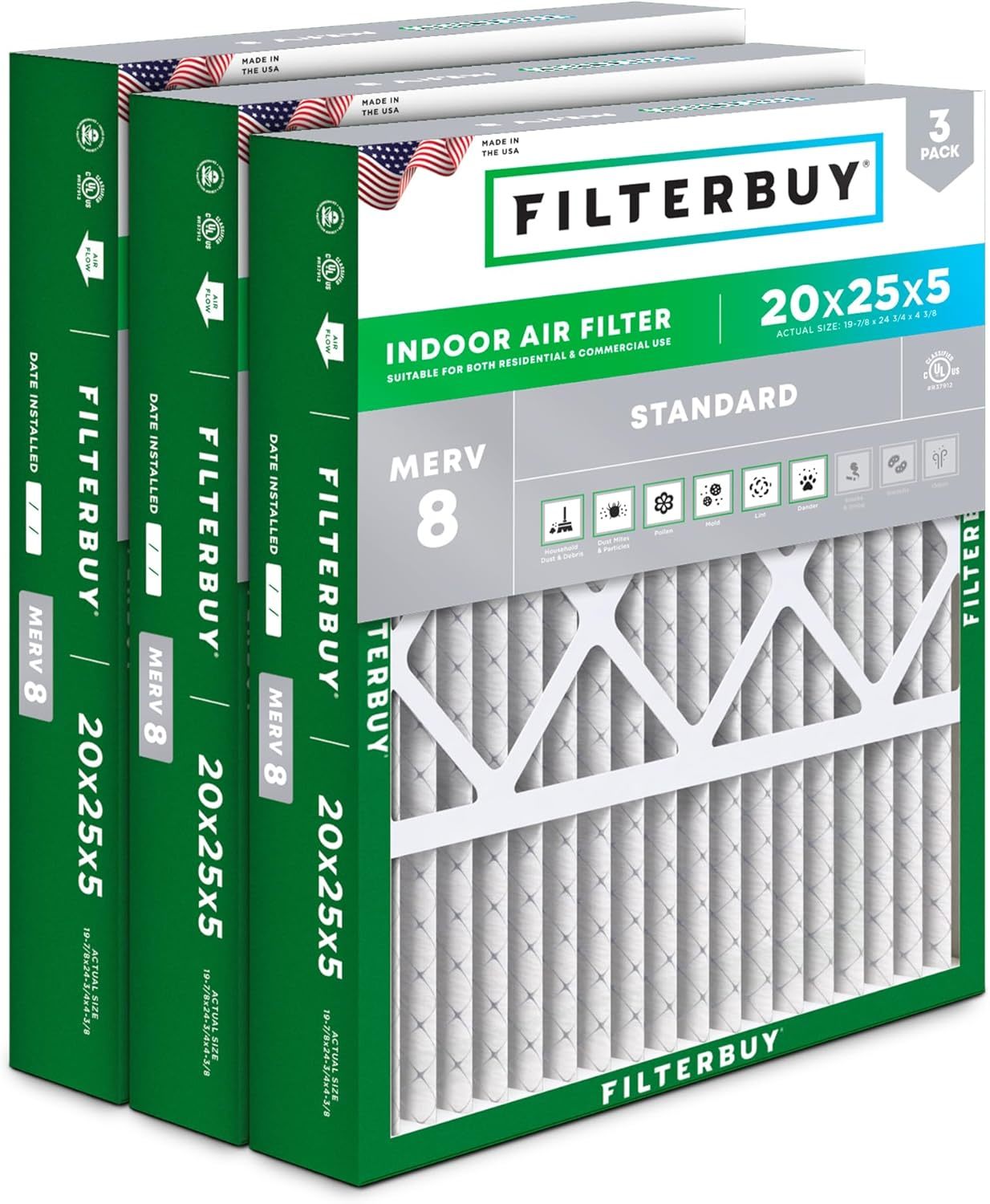 Filterbuy 20X25X5 Air Filter Merv 8, Actual Size: 19.88 X 24.75 X 4.38 Inches