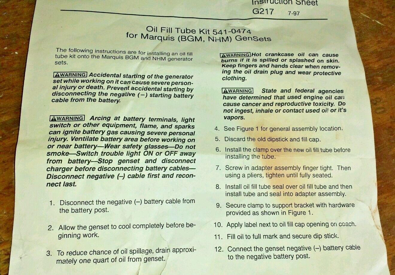 ONAN Marquis BGM NHM OIL FILL 24" TUBE 123-2039 DIP STICK 26" KIT New541-0474