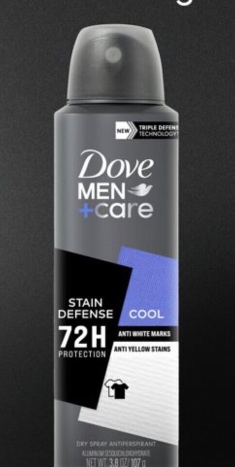 Dove Men+Care Stain Defense Dry Spray Antiperspirant, Cool, 3.8 Oz, 72 Hour Protection