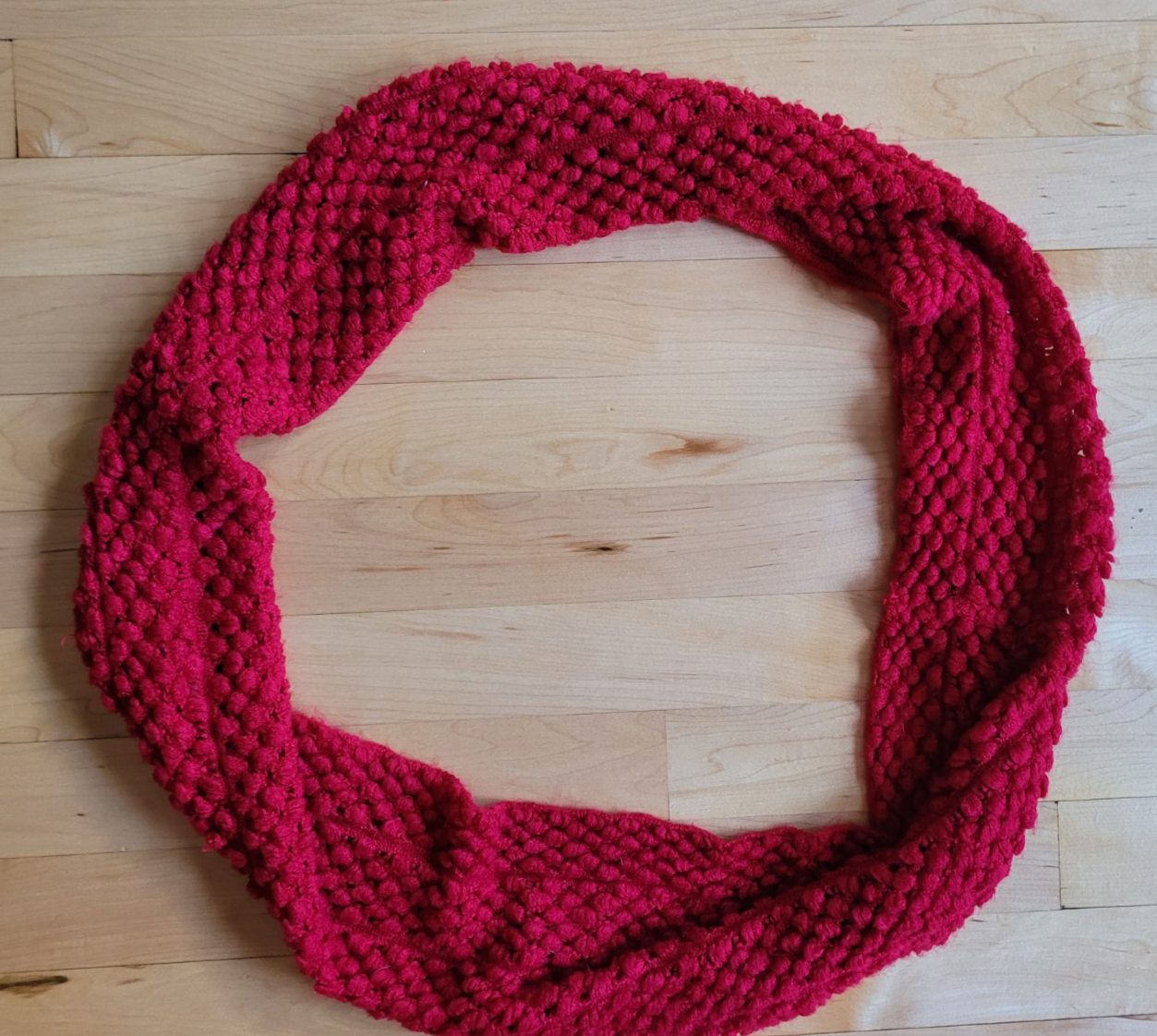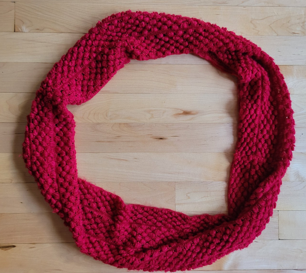 Red Infinity Scarf Circle Loop Cable Knit Cowl Neck Long Winter Warmer 30 x 11