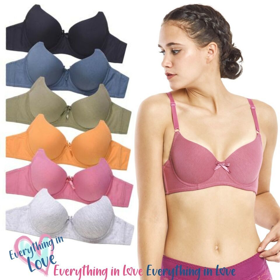 6 Pack Women Full Coverage Solid Comfort Cotton Lingerie Underwire Bra A Cup