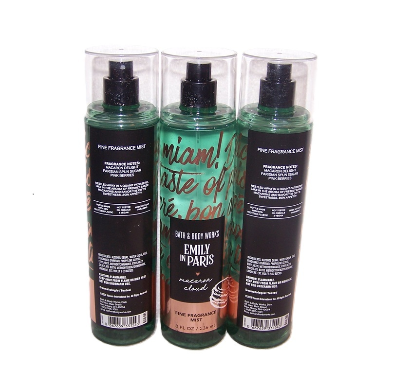Bath & Body Works Macaron Cloud Fine Fragrance Mist 8 oz 3 Pack Emily in Paris