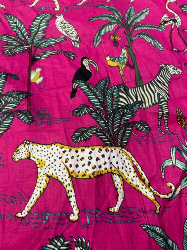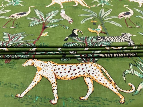 Cotton African Safari Mountains Animals Green Fabric Print by Yard D375.69
