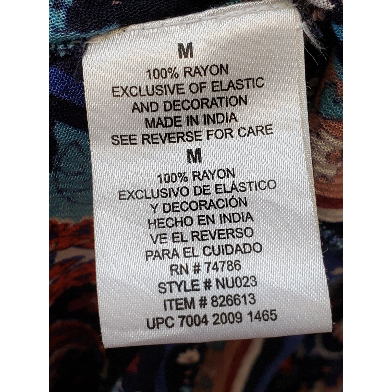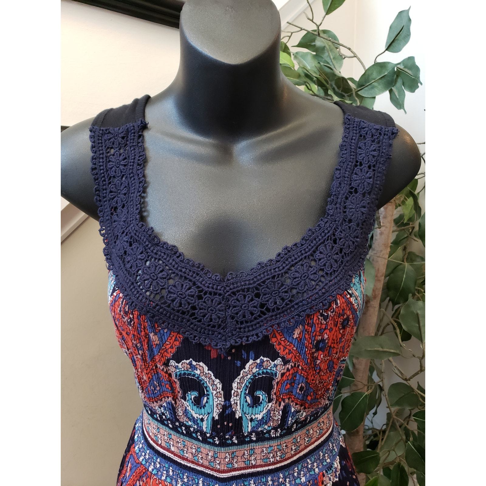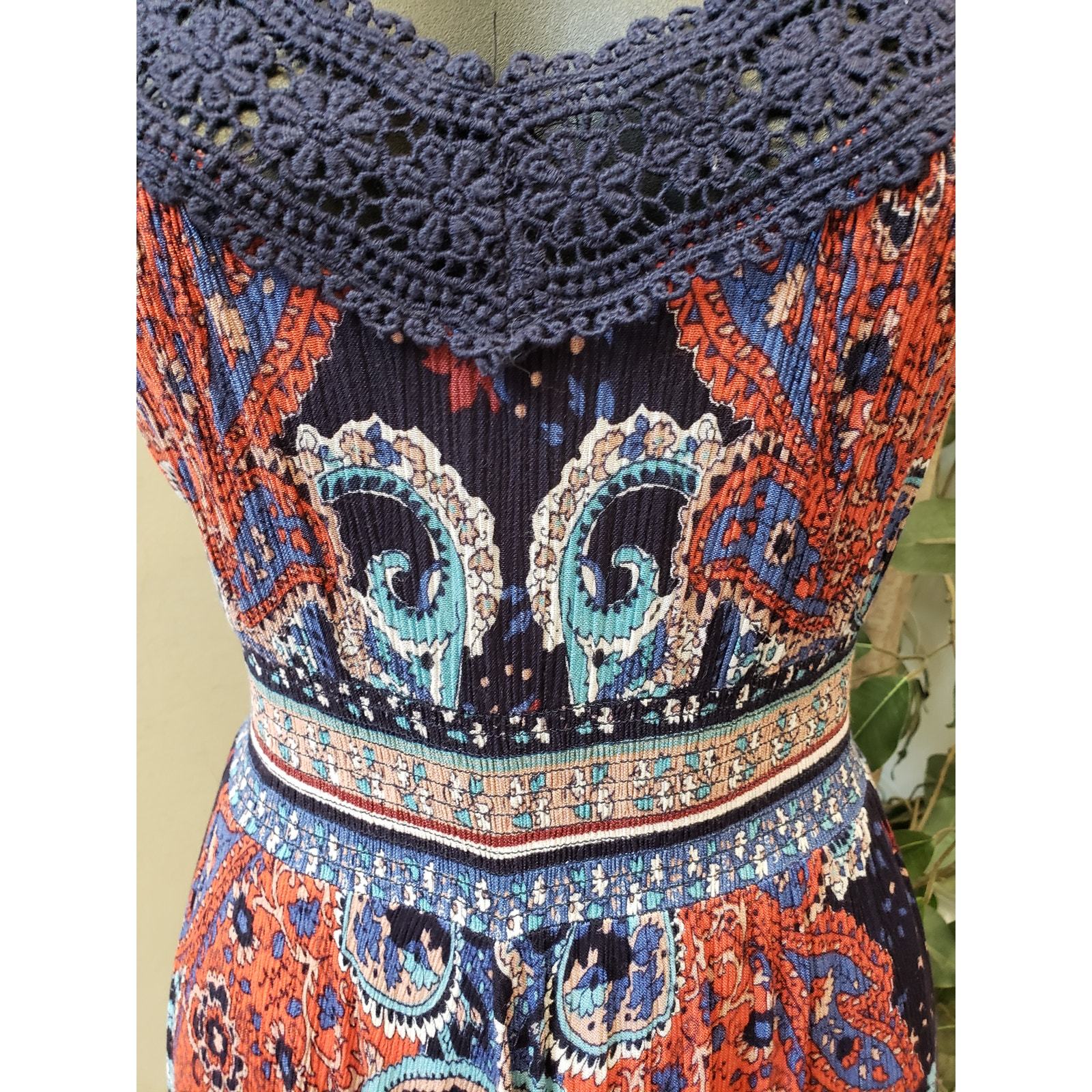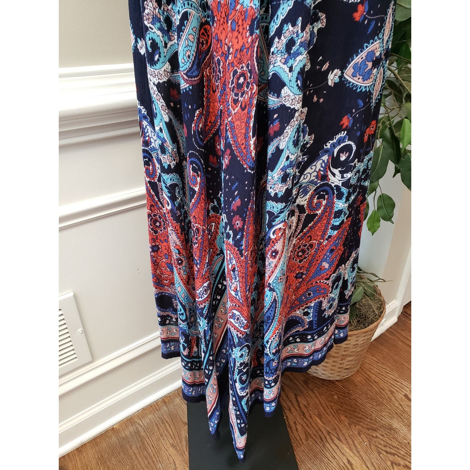 Bila Long Maxi Dress Womens Medium Multi Paisley Rayon Lace Trim Smocked Waist