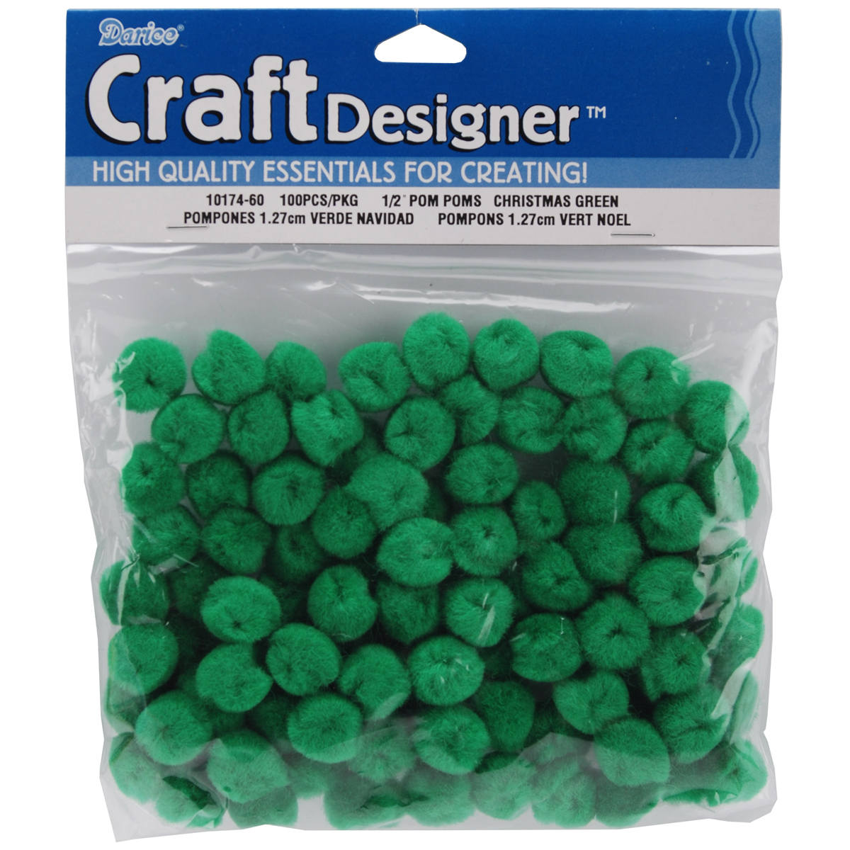 Craft Designer Pom Poms These acrylic pom poms are perfect for all kinds of crafts for children of all ages Pom poms have been around for years and are a proven favorite for crafts at home school camp and just about anywhere else This package contains 100 1 2in pom poms that are available in a variety of colors WARNING Choking Hazard small parts Not for children under 3 years Imported