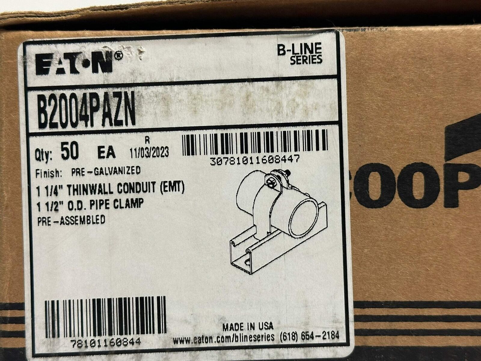 50 PK Cooper B Line (B2004PAZN) 1 1/4" Thin Wall Conduit 1 1/2" O.D Pipe Clamp The 50 PK Cooper B-Line (B2004PAZN) 1 1/4" Thin Wall Conduit 1 1/2" O.D Pipe Clamp is a set of durable clamps designed to securely hold 1 1/4" thin wall conduit with a 1 1/2" outer diameter. These clamps are ideal for supporting and securing conduit in various electrical and industrial applications. Made for long-lasting performance, they ensure reliable installation and provide stability for wiring and piping systems. The pack of 50 offers a cost-effective solution for large-scale projects. About Us Welcome to Help! Resale, your go-to consignment shop where value meets quality. At Help! Resale, we're dedicated to providing you with an exceptional shopping experience, whether you're looking to find the best deals or consign your gently used items. Help Resale 7200 Fair Oaks Blvd Ste 120 Carmichael CA 95608 Business Hours : Monday-Friday: 9:00 am to 5:30 pm (PST) All product and company names are trademarks TM or registered trademarks of their respective holders. Use of them does not imply any affiliation with or endorsement by them.