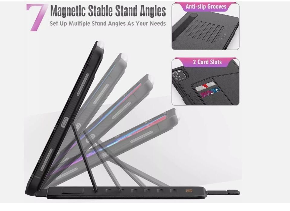? Multiple Stand Angles: 7 adjustable magnetic stand positions for comfortable viewing and typing, ideal for work, video calls, and media consumption.