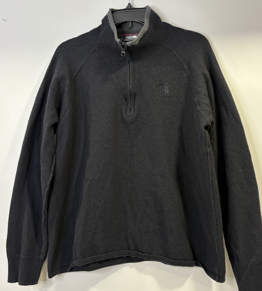 North Face Sweater Mens Large Black Wool Blend 1/4 Zip Pullover Outdoor