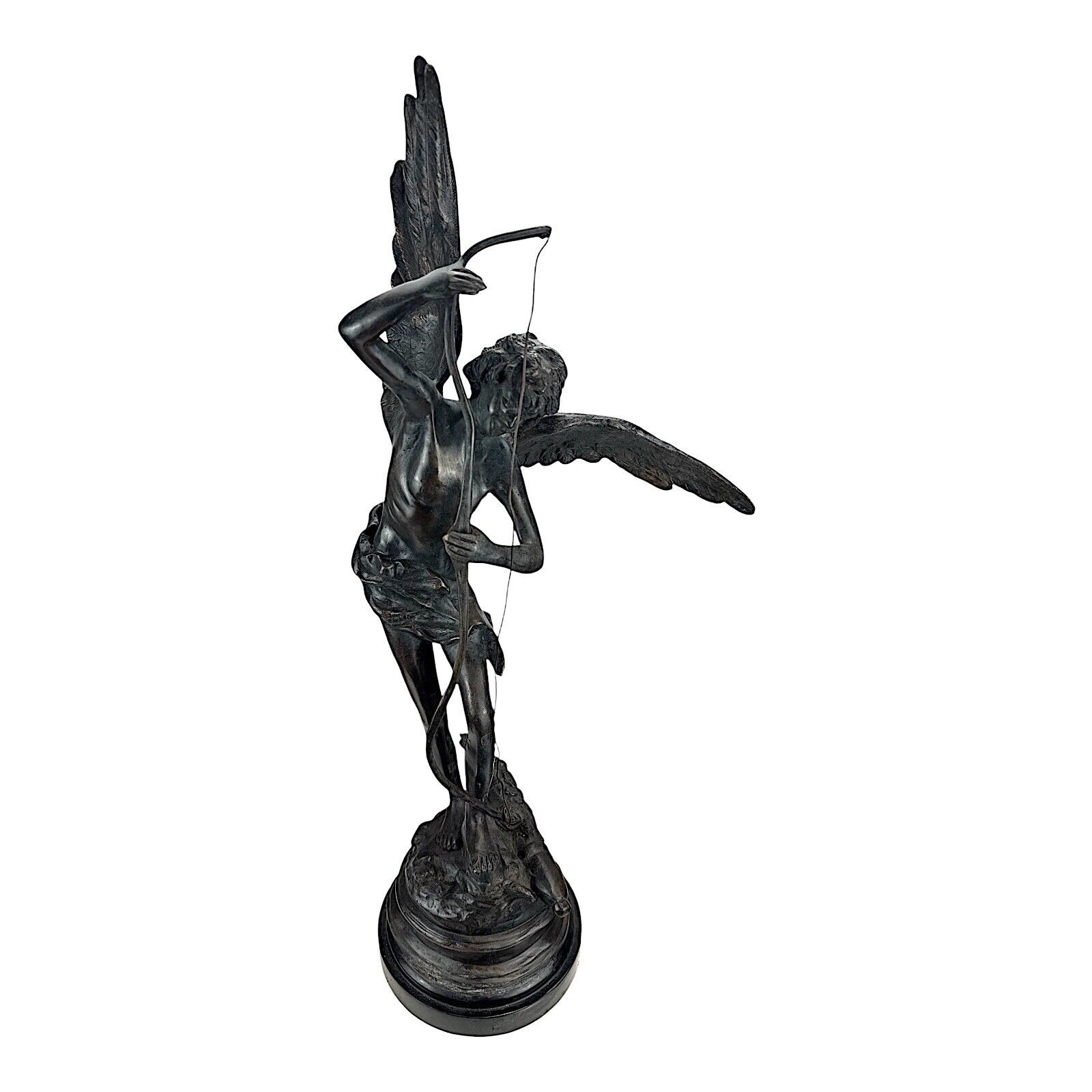 Cupido encordando su arco escultura de estatua de bronce real en mármol natur...