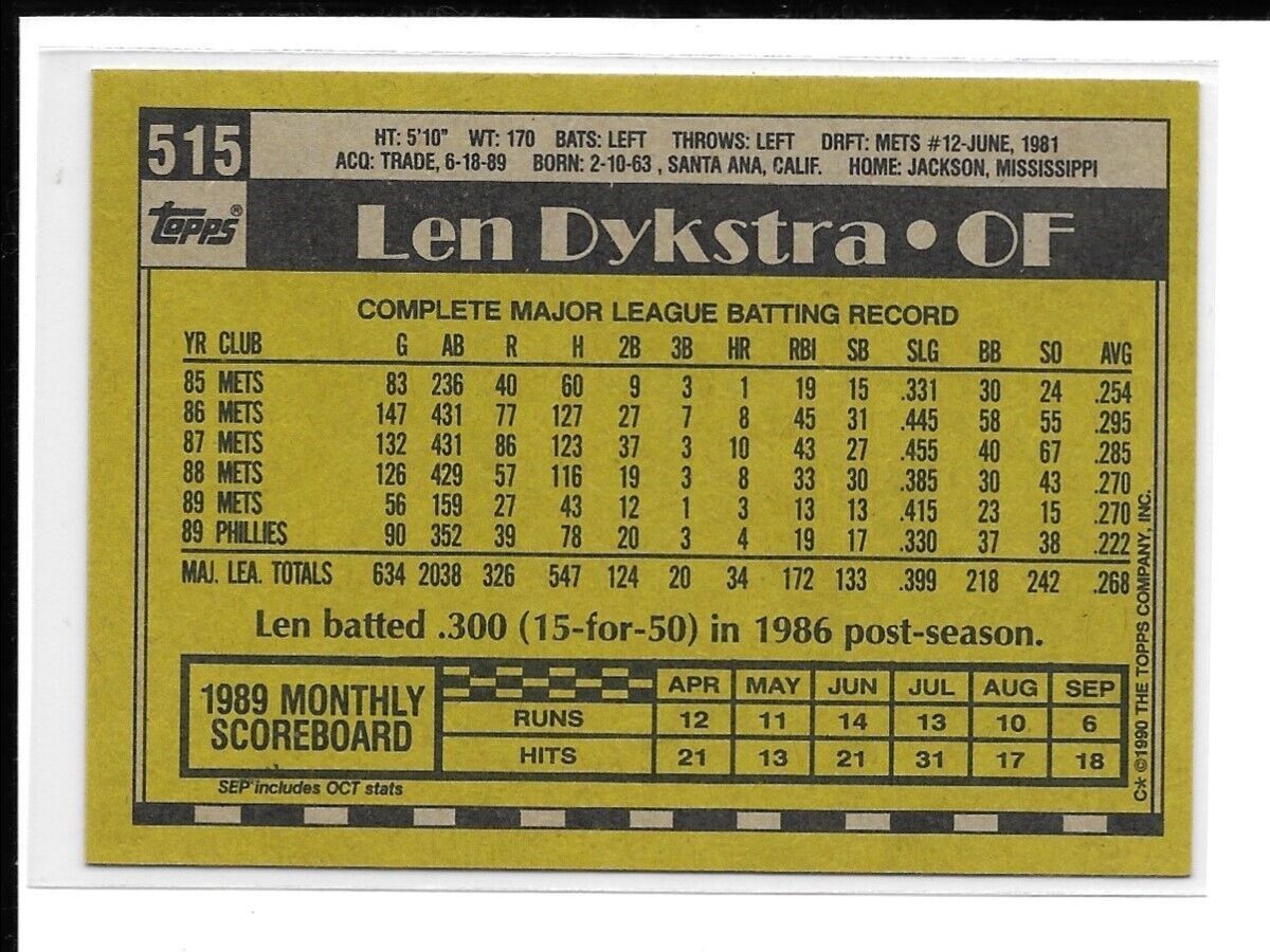 1990 Topps, #515, Len Dykstra, Philadelphia Phillies