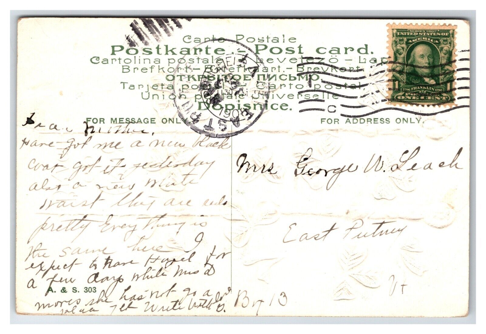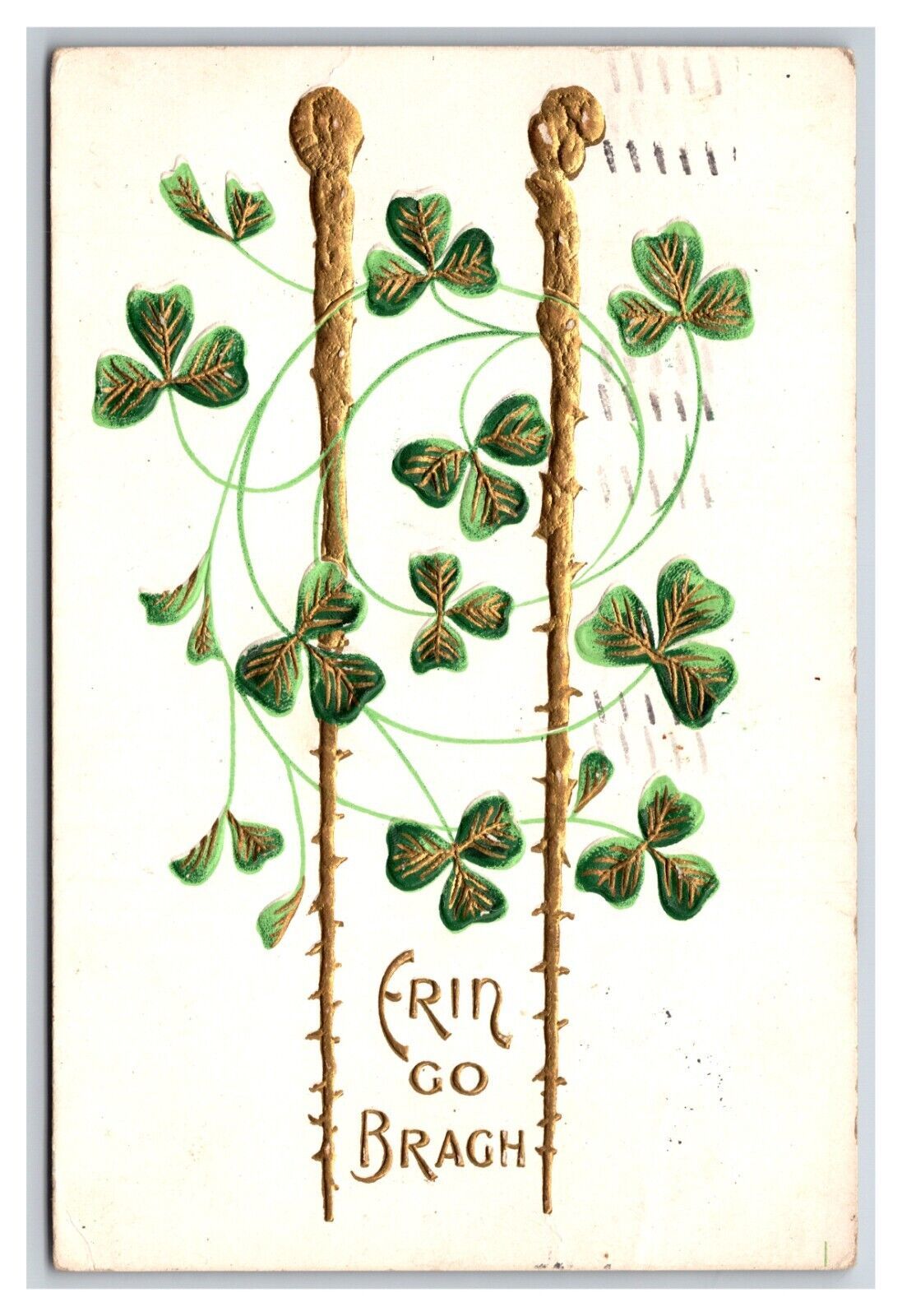 Erin Go Bragh Clovers St Patricks Day Embossed DB Postcard XC7