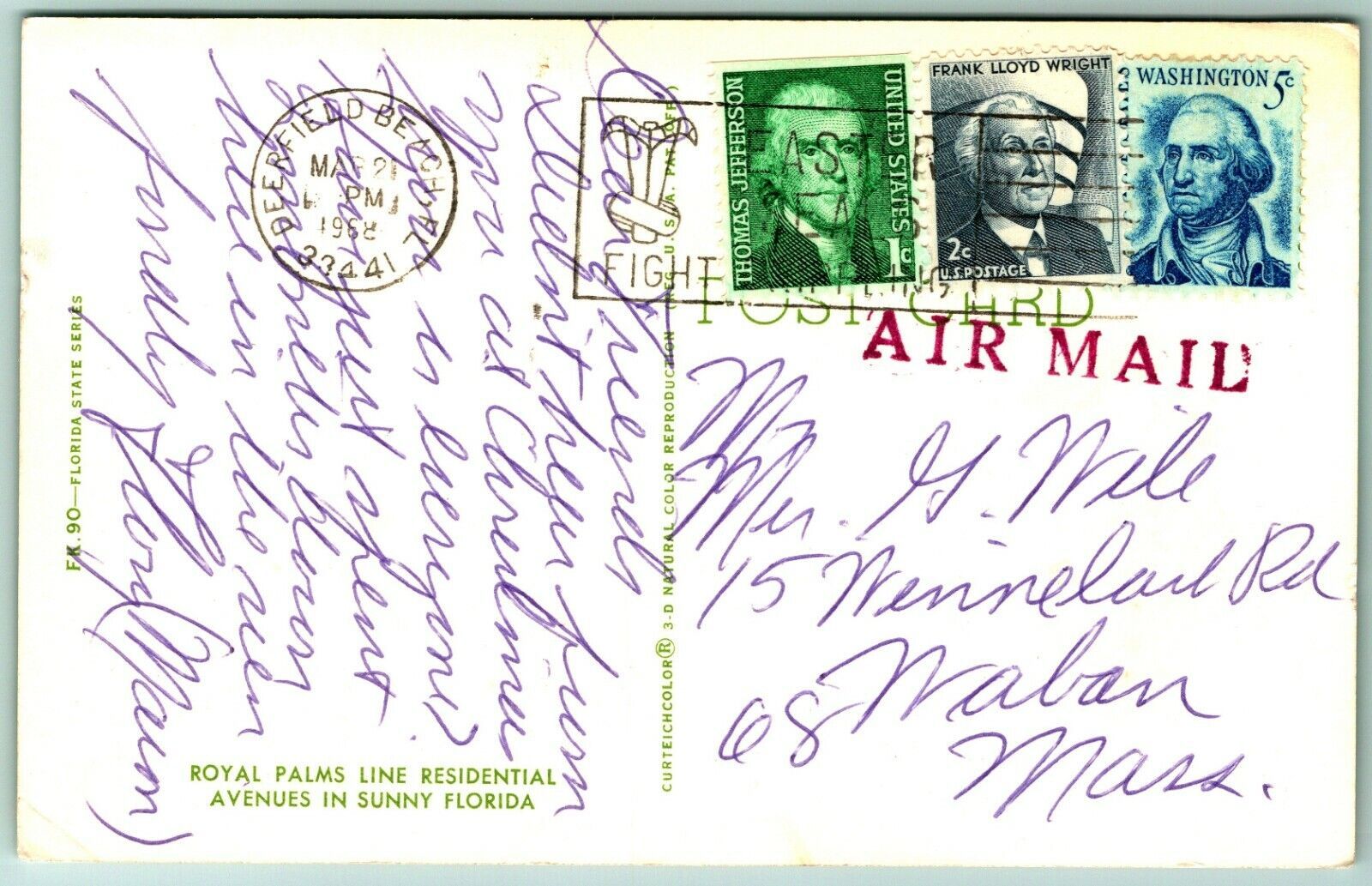 Royal Palms Line Residential Avenues In Sunny Florida FL Chrome Postcard I8