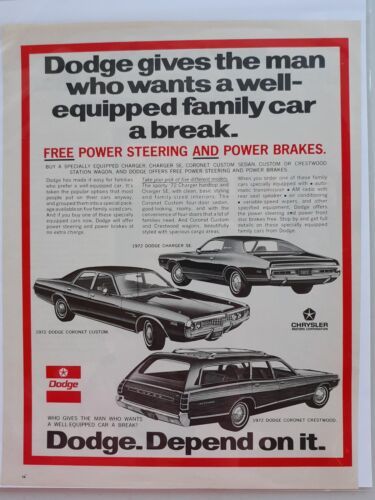 1971 Chrysler Motors 1972 Dodge Coronet Charger SE Vintage Magazine Print Ad