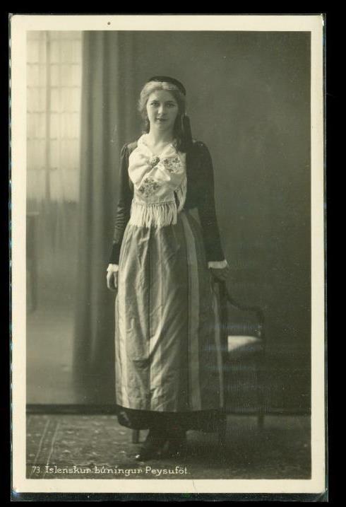 Vintage Real Photo Postcard RPPC Lady in Ethnic Folk Dress Reykjavik Iceland