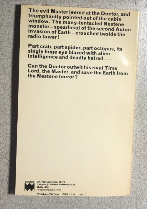 DOCTOR WHO TERROR OF THE AUTONS by Terrance Dicks (1980) Target UK paperback