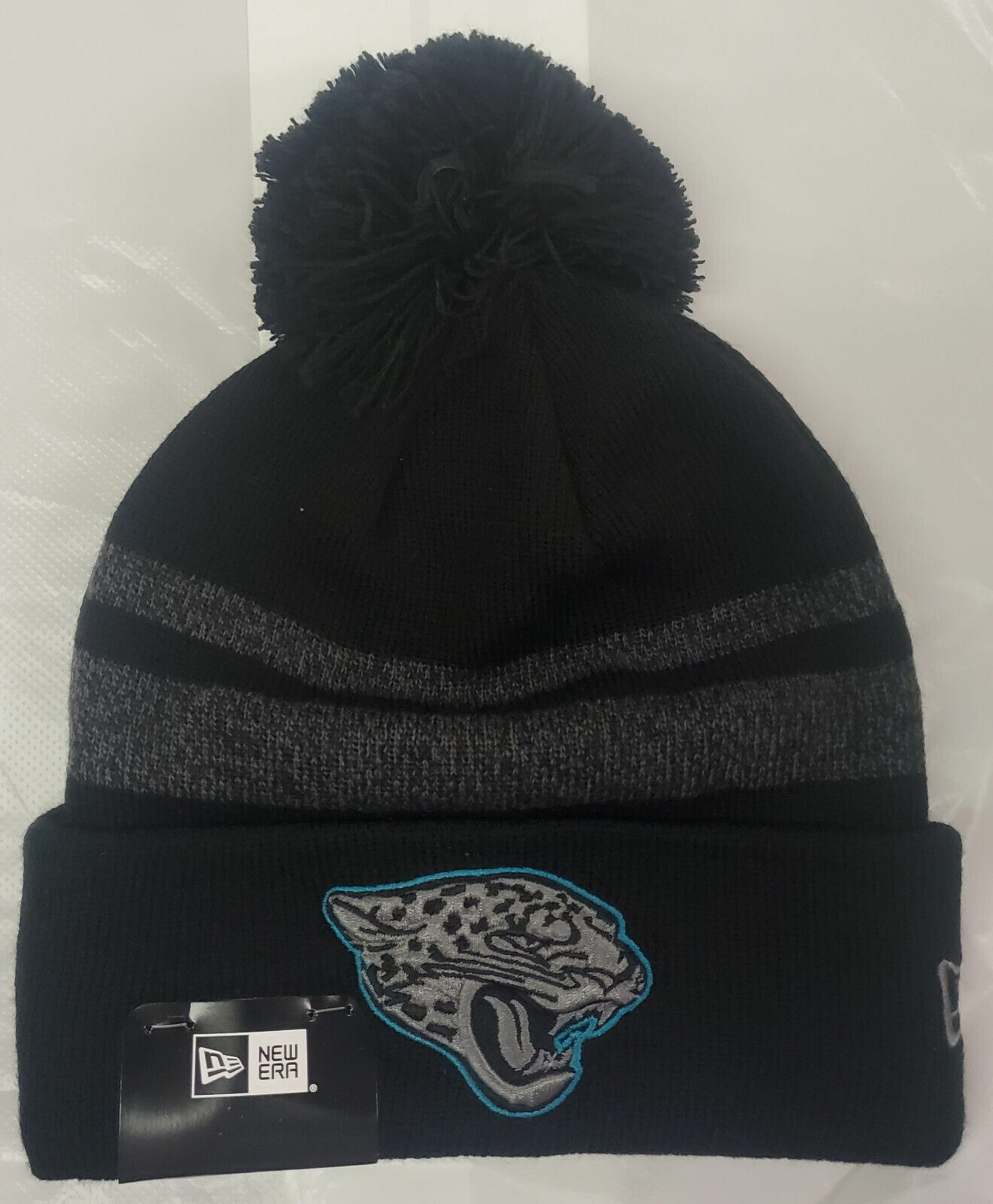 Officially Licensed Jacksonville Jaguars New Era Dispatch Stocking Cap.