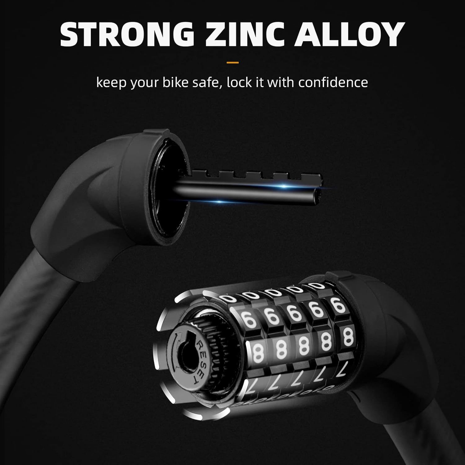 No one can decode your password except yourself : ROCKBROS bike lock combination can set 100000 possible password which is too hard for any thief to try out. (Initial password 00000) Sturdy Durable: Thickness of 0.7 inches, 6 steel cables inside, each cable contain 7 high-strength steel wire. Lock cylinder is made of zinc alloy as well. This bike lock with combinations has superior sturdiness and durability. Water-proof Anti-rust: Covered with thickened PVC material, you can trustingly put this specialized bike lock outdoor on rainy days without worrying about risk of rust. Soft-touch Protective: The bike lock cable combination is sprayed with rubber paint, matte texture, smooth to touch and will not scratch the bicycle paint. Perfect daily tool: Weight only 0.8lb, nice choice as a daily tool. Use this lightweight bike lock to protect your motorcycles, scooters, skateboards, grills, ladders, gates, lawnmowers, etc.