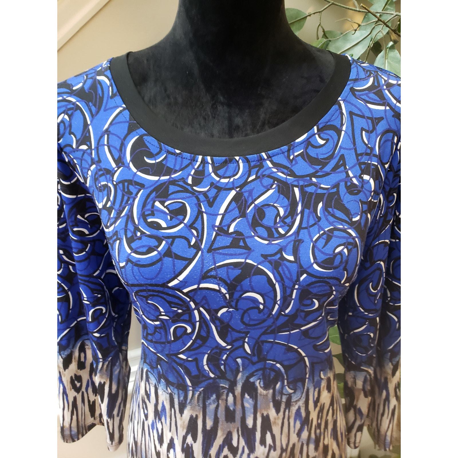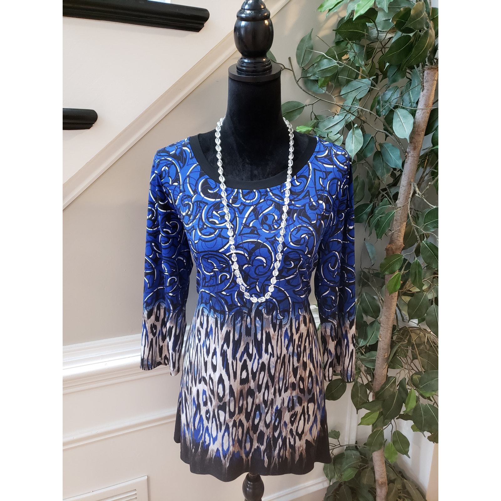 Travelers by Chico’s Tunic Top Women's Medium Multi Printed Stretch Long Sleeve