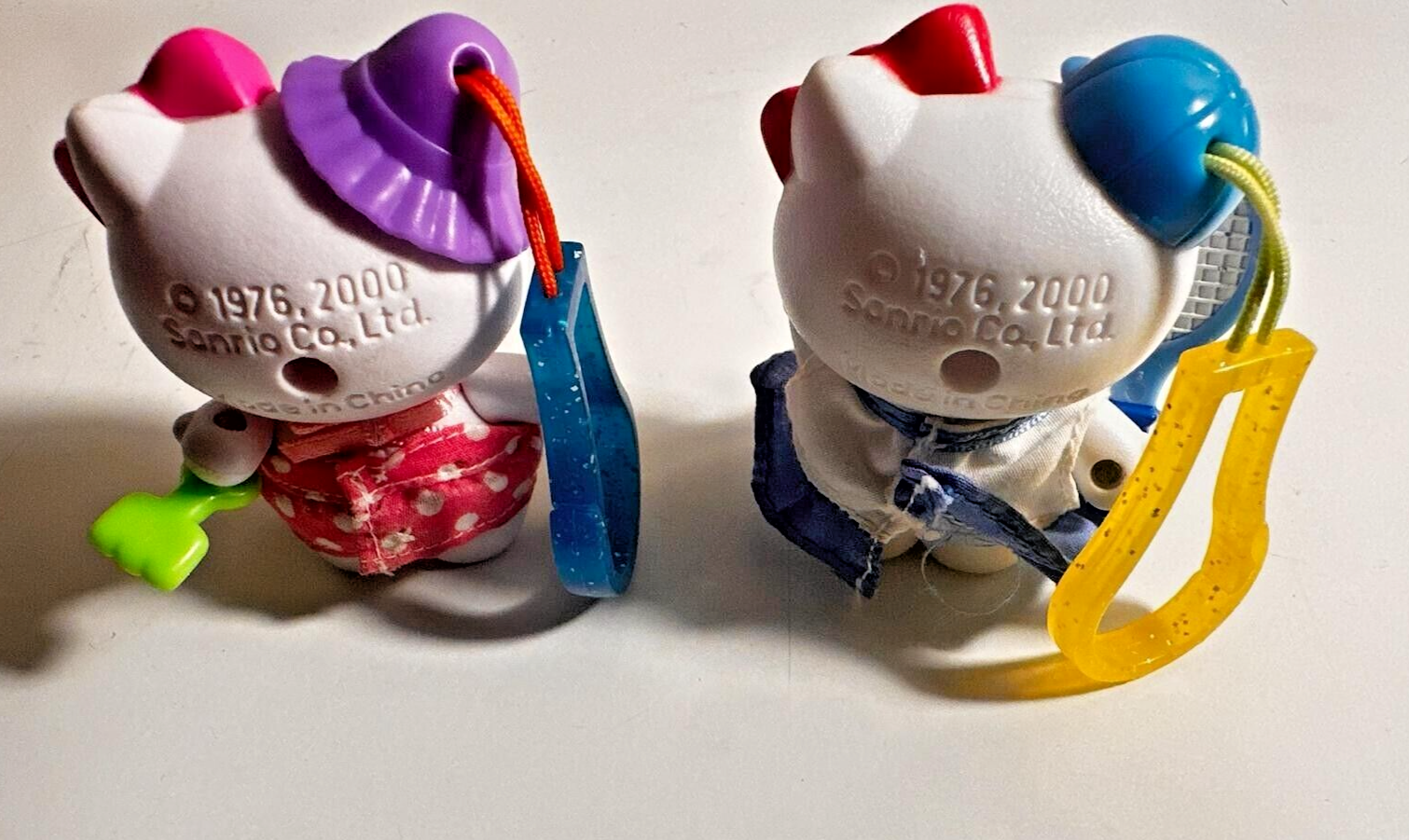 This adorable Sanrio 2000 Hello Kitty figure set features two unique beach and tennis-themed Hello Kitty figurines, each wearing cute outfits and holding accessories!