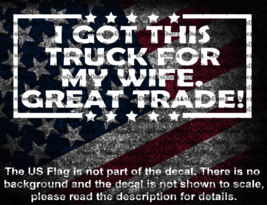 I Got This Truck For My Wife. Awesome Trade! Funny Vinyl Decal US Made