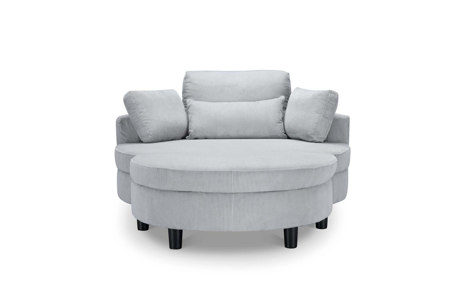Round sofa comfortable corduroy fabric sitting comfortable with two throw pillows, a waist pillow whether you lie or sit can be very good to protect your waist