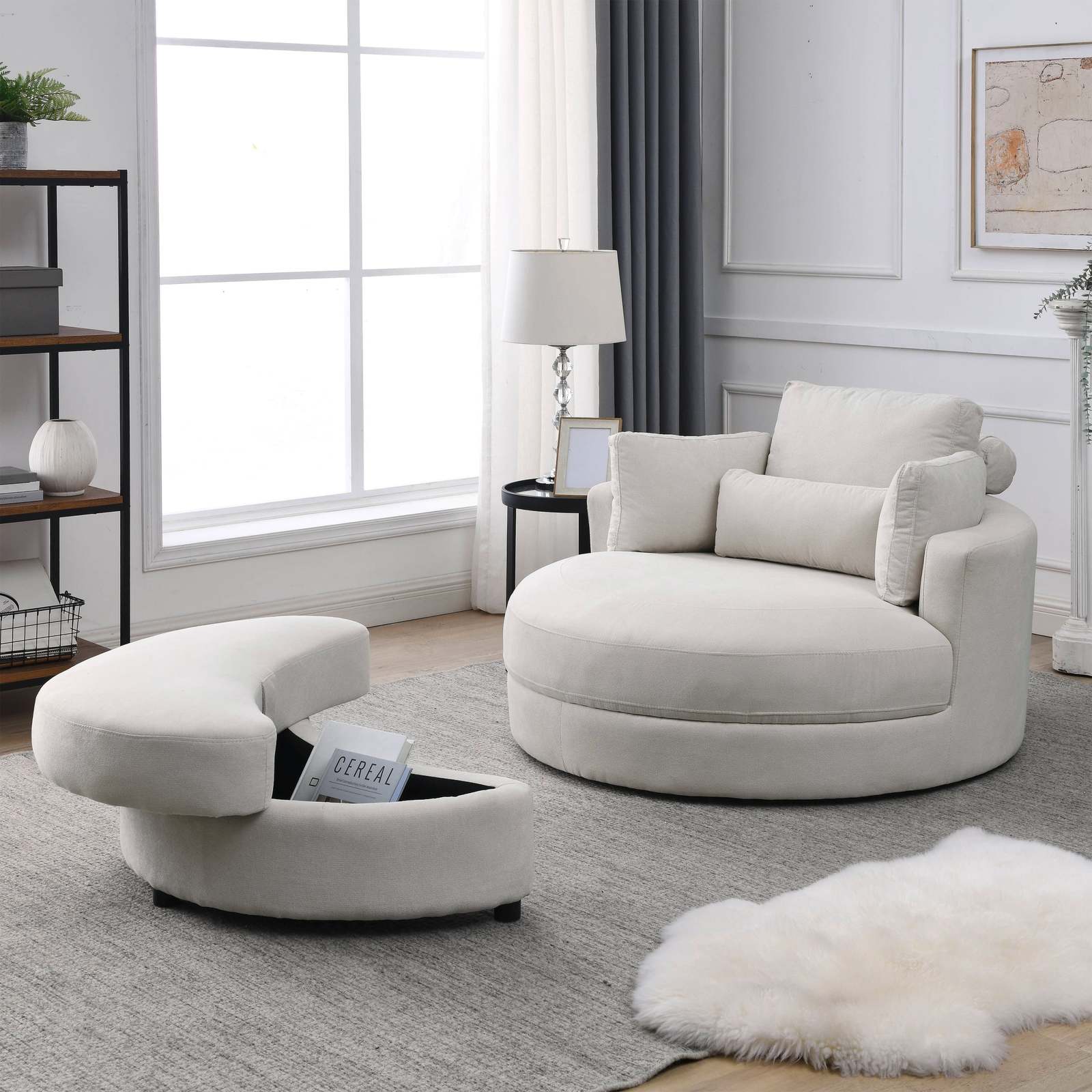?Modern swivel chair: Upholstered modern sofa chair design made of soft fabric, single chair can rotate.